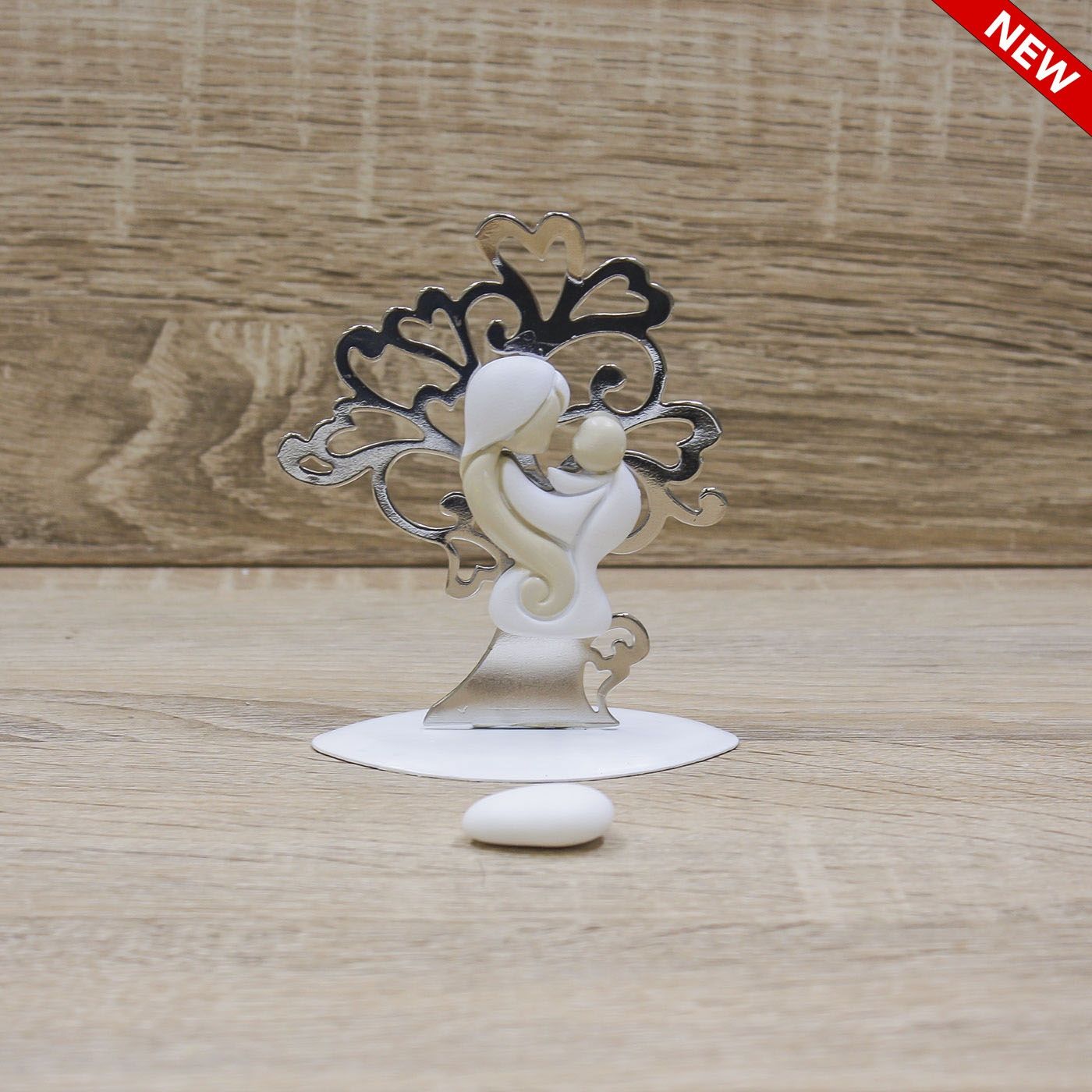 Maternità in resina e Albero fatto di cuoricini in metallo
