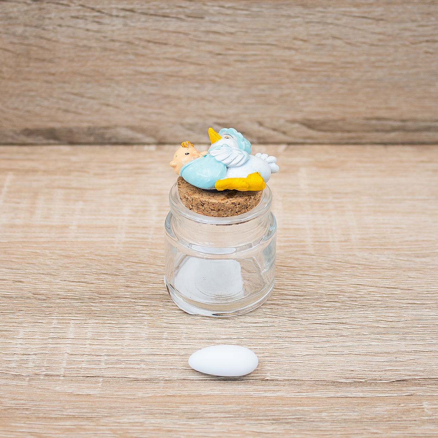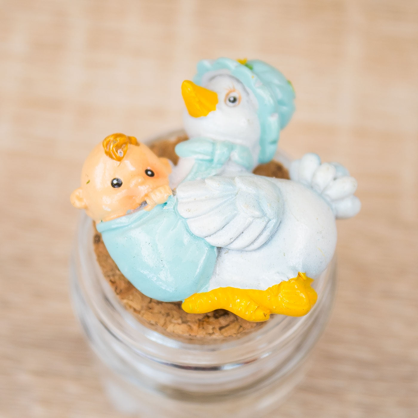 Barattolo Portaconfetti con Applicazione di una Cicogna con Bimbo.