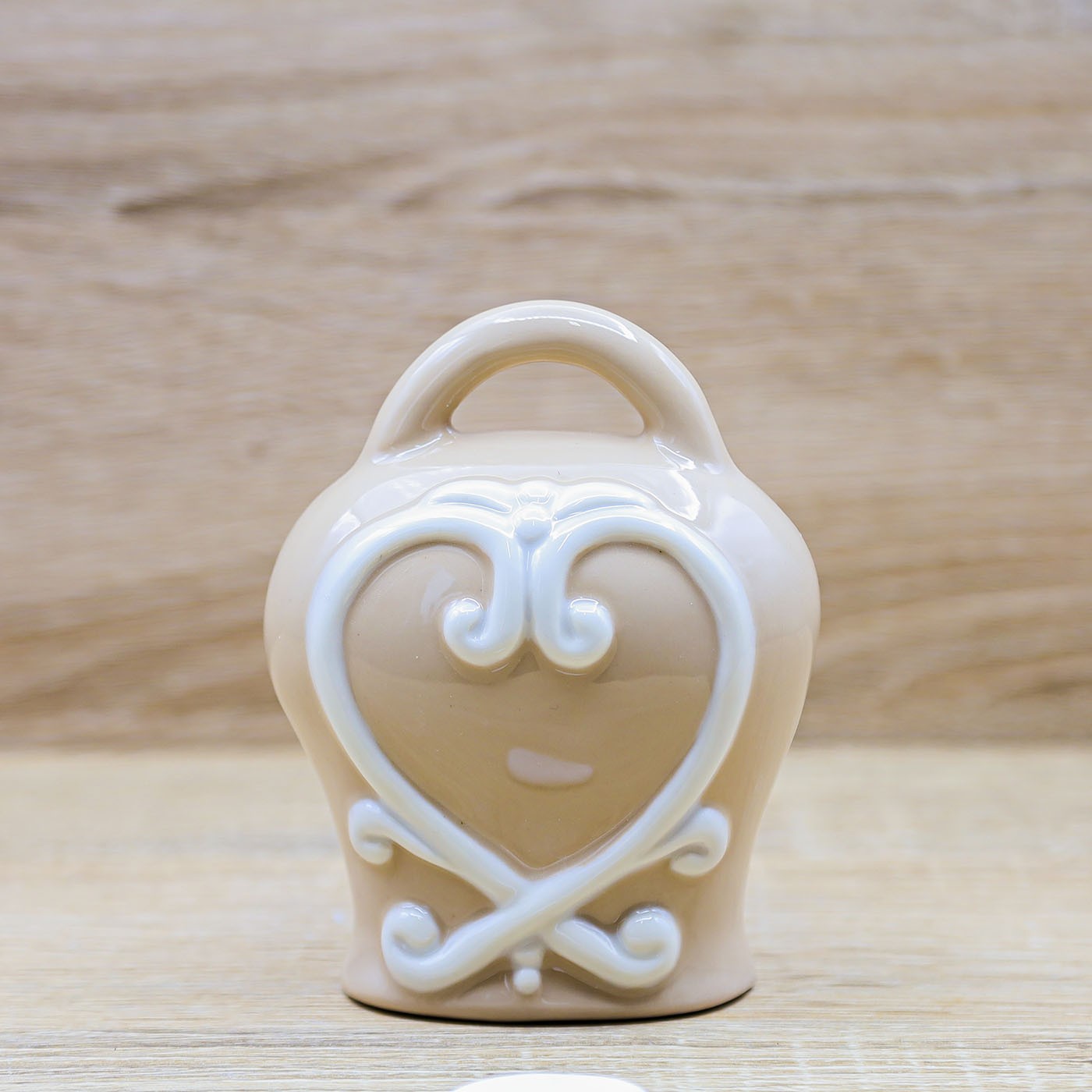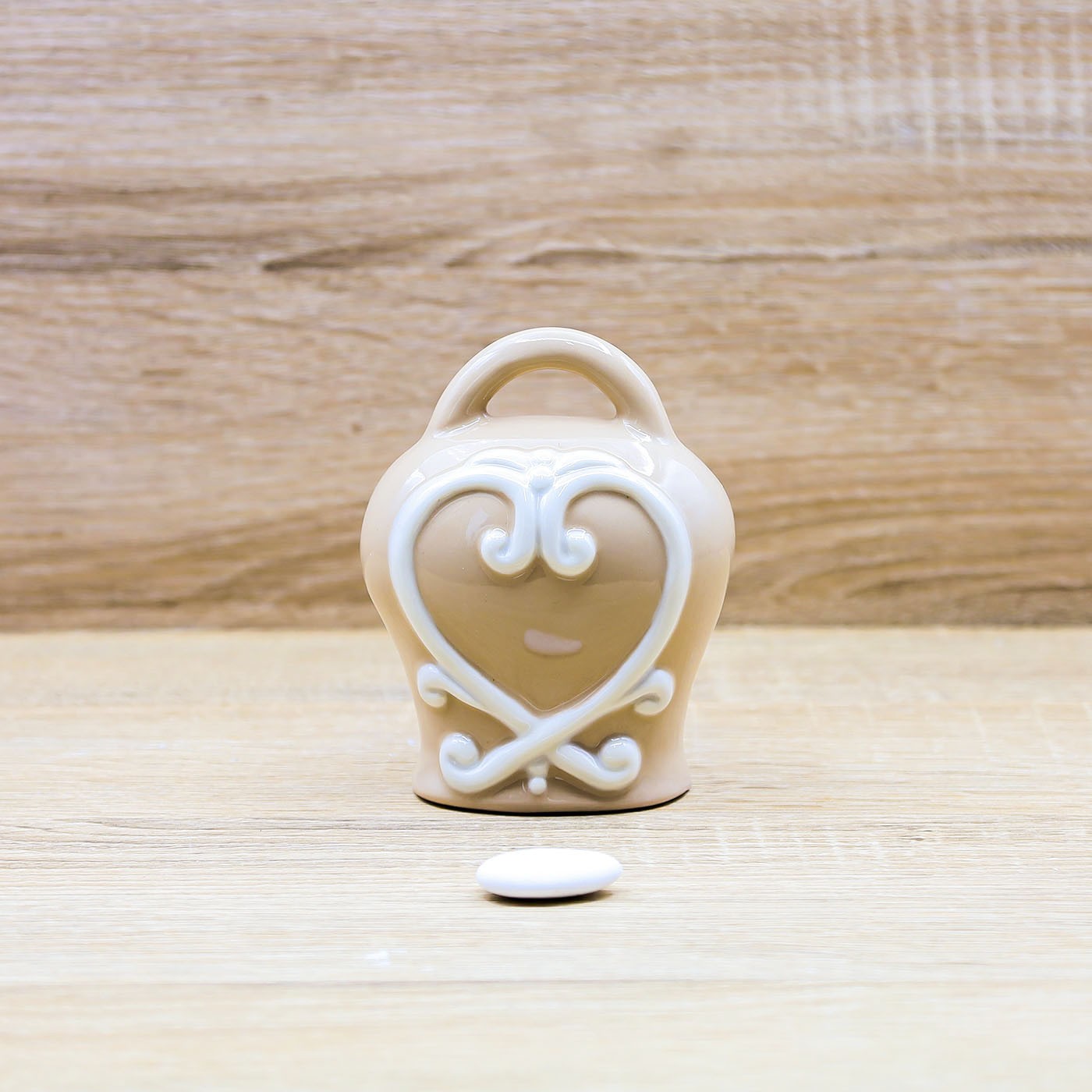 Campana di colore Tortora con decori in bianco, in Porcellana di Capodimonte, firmato Pienne Design.