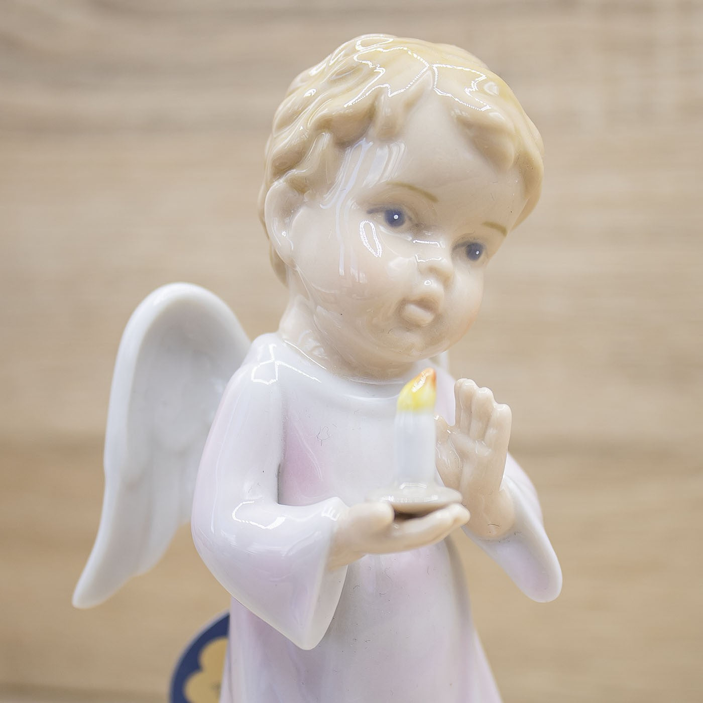 Carillon Angelo Rosa con Candela in Porcellana, firmato Mandorle by Paben.
