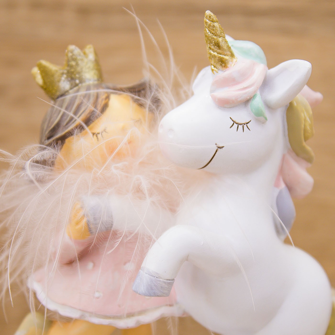 Carillon di una Bimba con Corona, piume rosa al collo e un Unicorno con criniera colorata, firmato Mandorle by Paben.