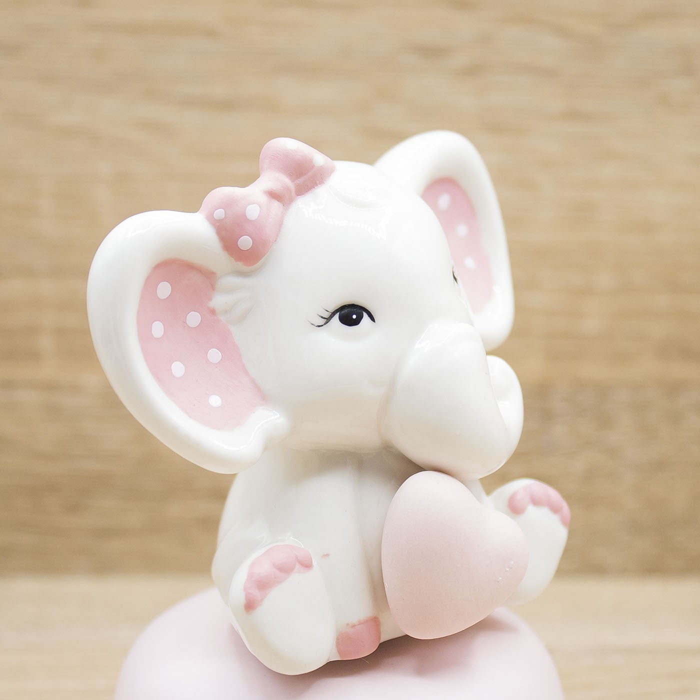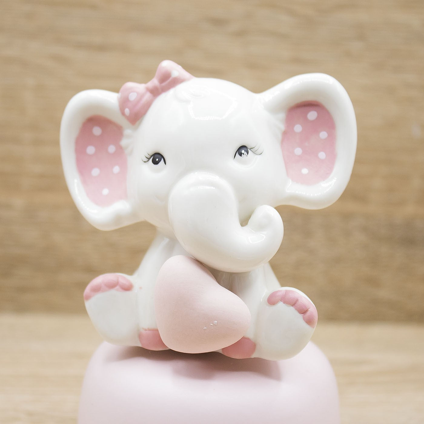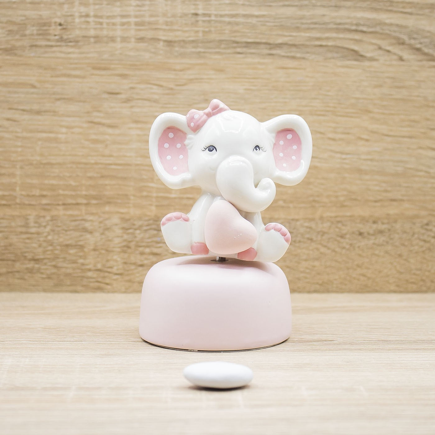 Carillon Elefantino con cuoricino e fiocchettino rosa, firmato Claraluna.