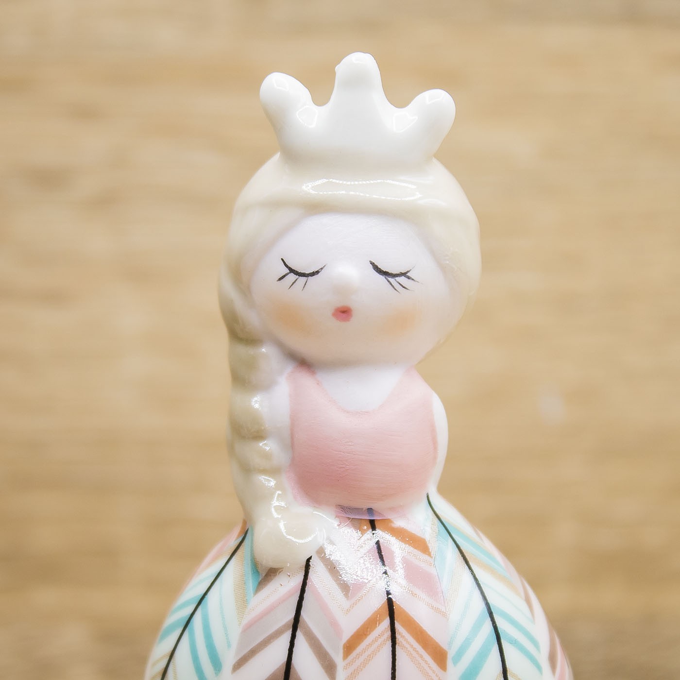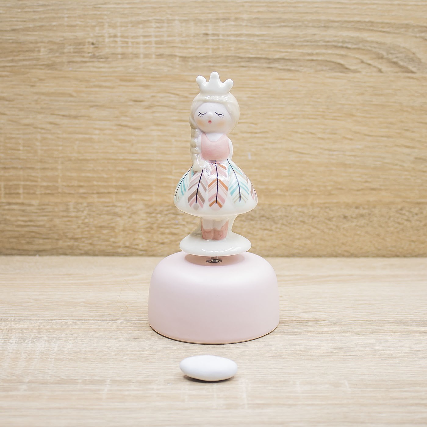 Carillon di una Principessa ballerina con corona, gonna decorata con piume colorate, firmato Claraluna.