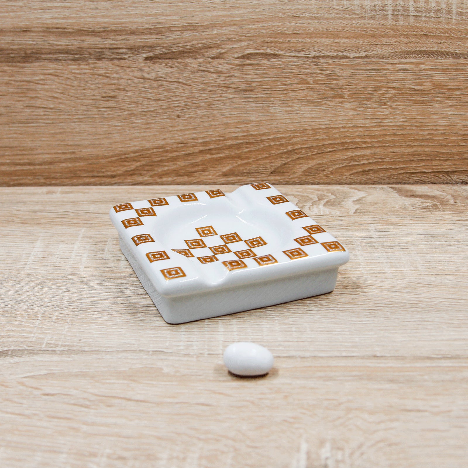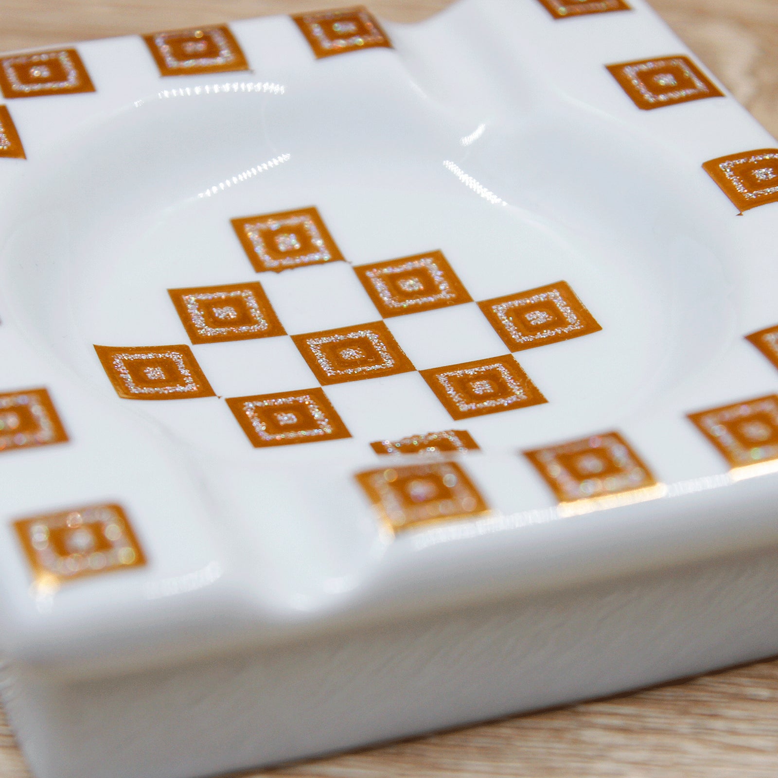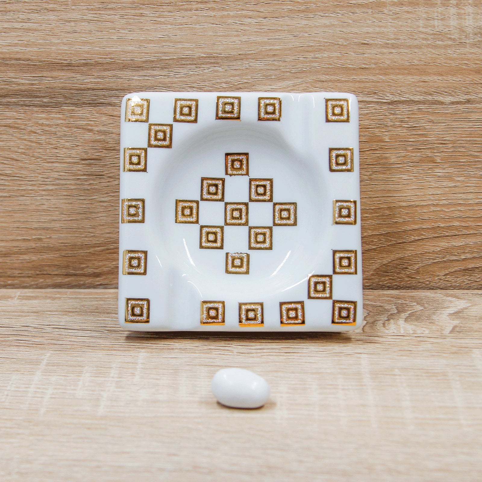 Ceneriera Quadrata Porcellana con Decori Geometrici in Oro e Glitter, firmato Caroline