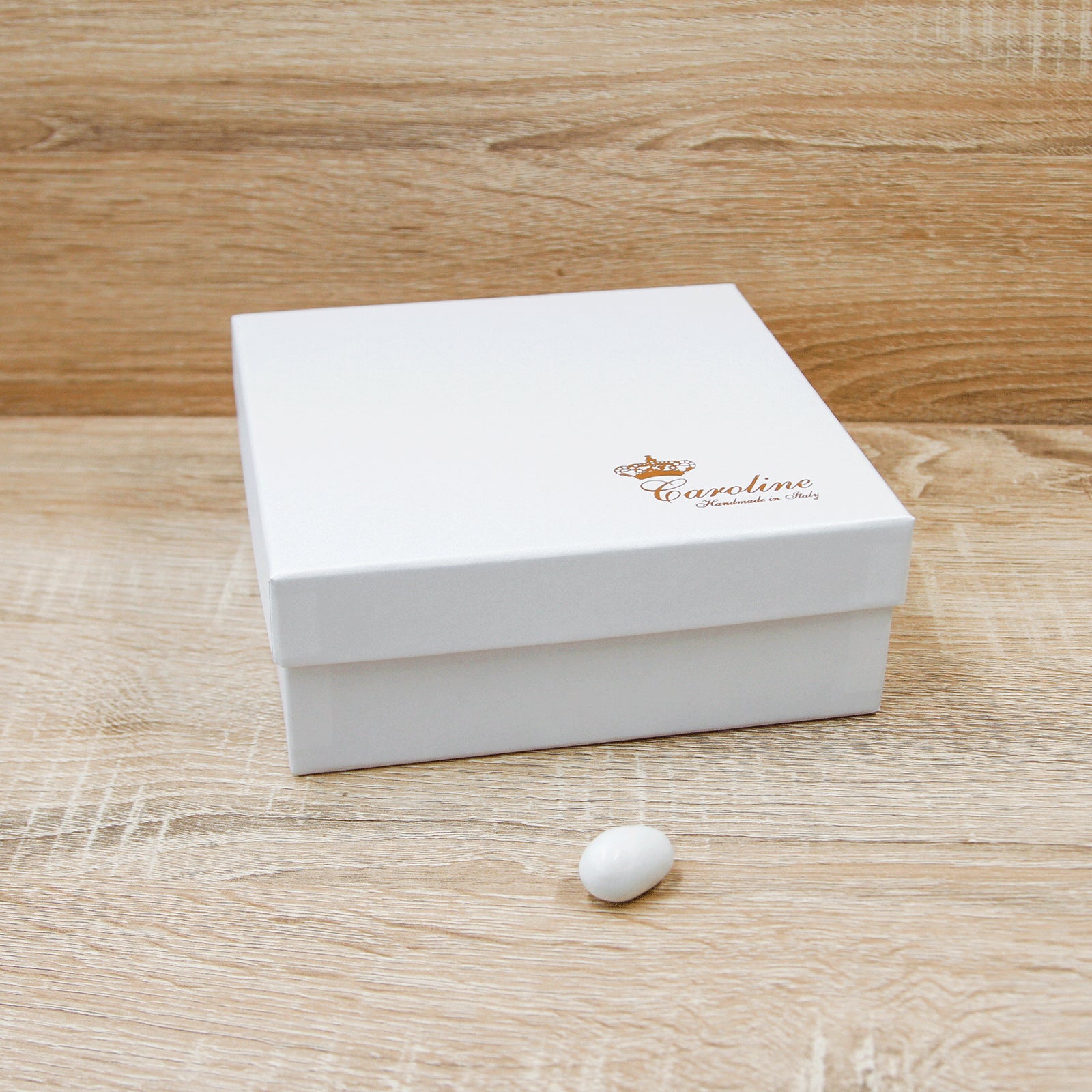 Il prezzo con la confezione comprende: Astuccio, Doppio Nastro, Gessetto o Fiore a Scelta, Portaconfetti e 5 Confetti.