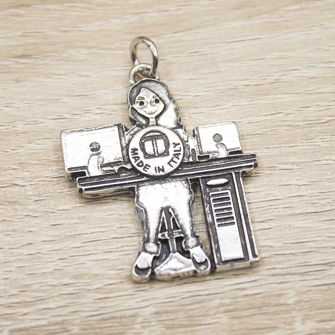 Ciondolo per Laurea in Informatica , placcato in Argento, firmato Tabor.