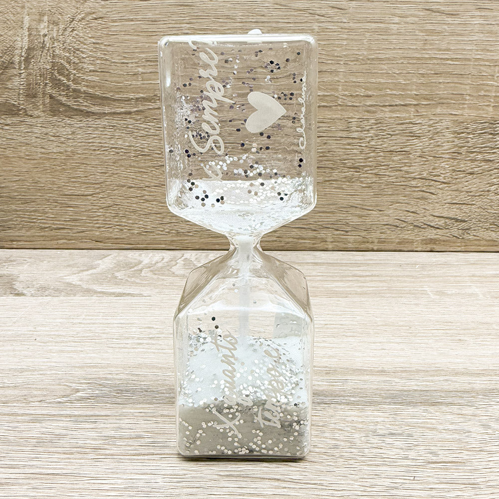 Clessidra Bianca con frase: "Per quanto tempo è per Sempre ?", firmato Claraluna.