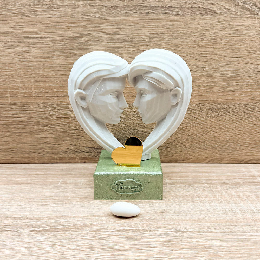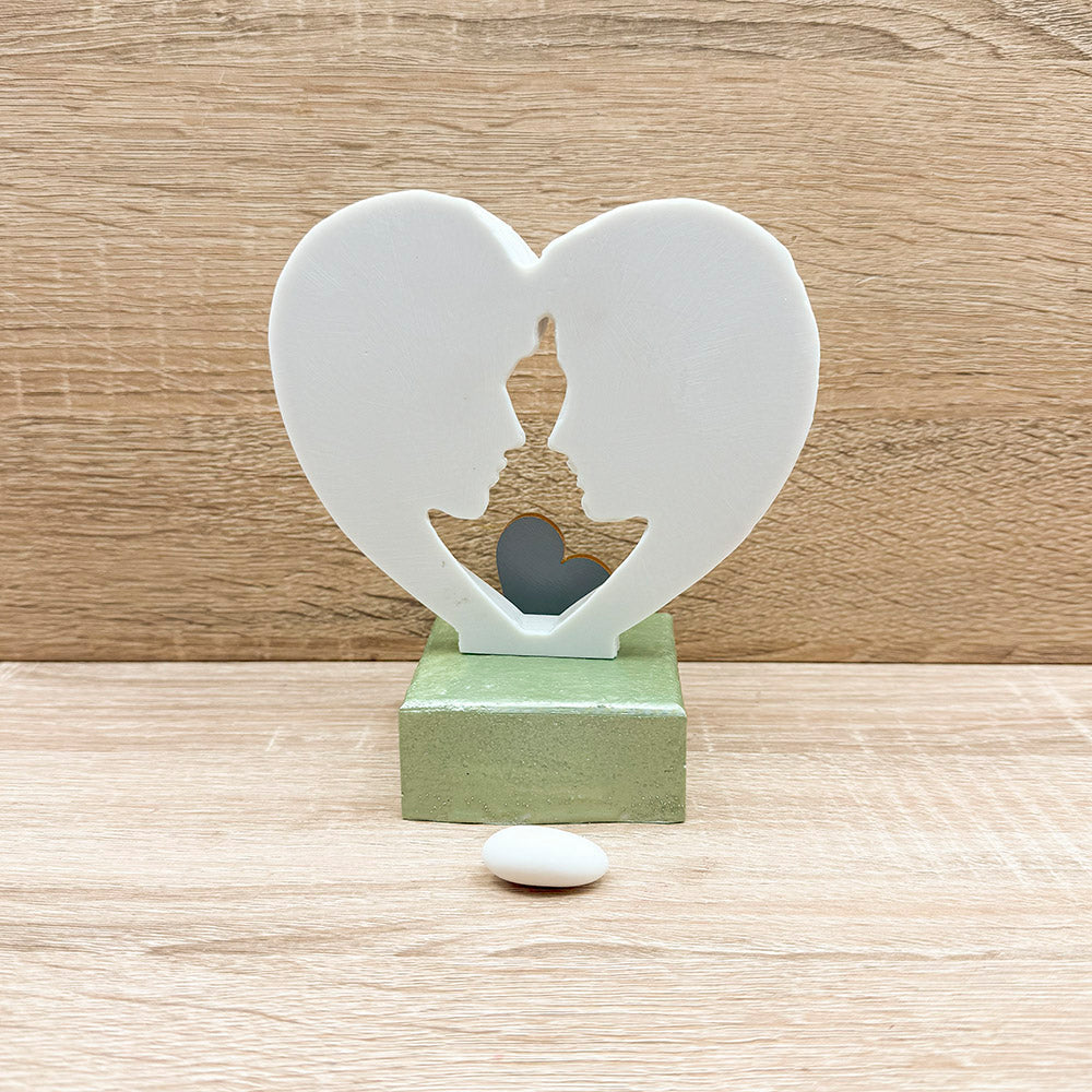 Statuina Coppia Innamorati, con base verde e cuore in plex.