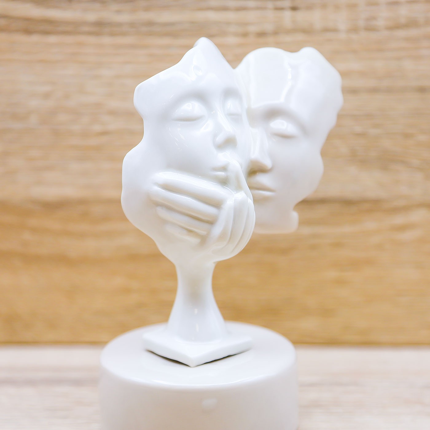 Statuina Stilizzata di due innamorati con base beige, firmato Pienne Design.