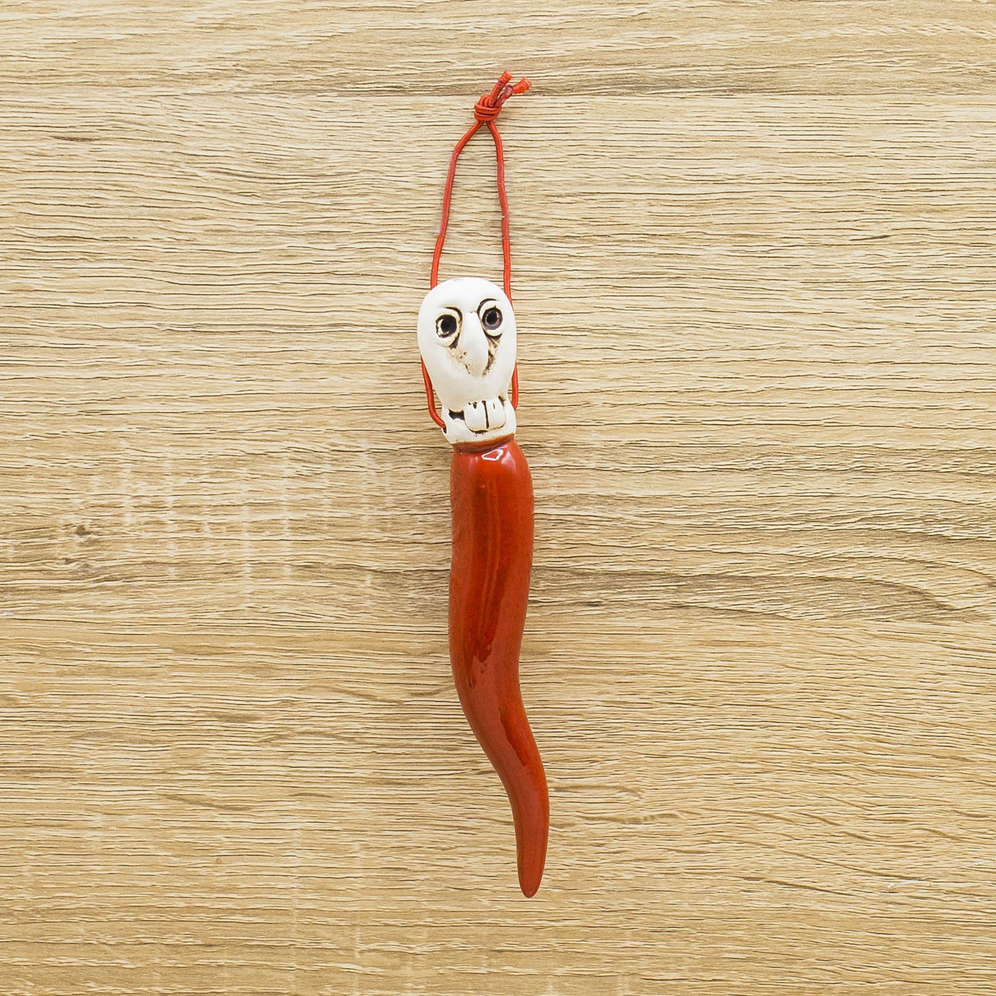 La civetta abbinata al tradizionale cornetto rosso acquista un valenza scaramantica fortissima, due simboli della tradizione qui uniti per realizzare un vero e proprio talismano contro la cattiva sorte.