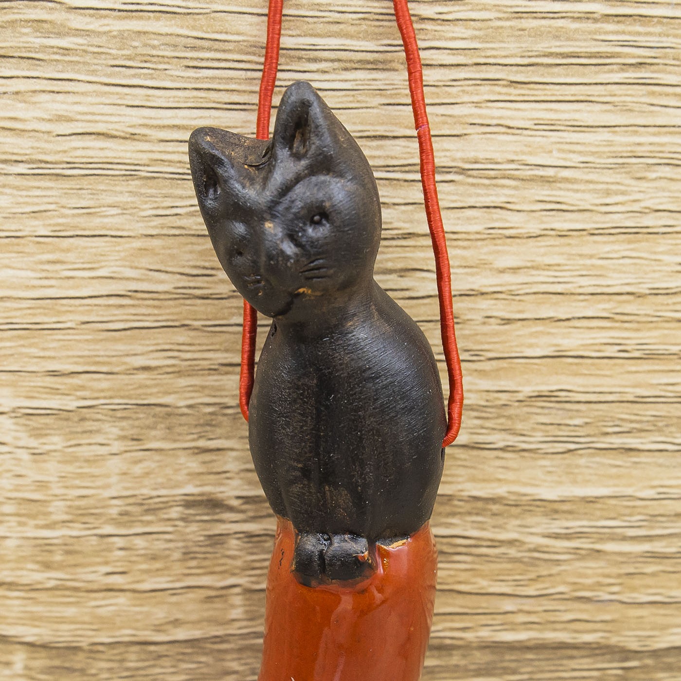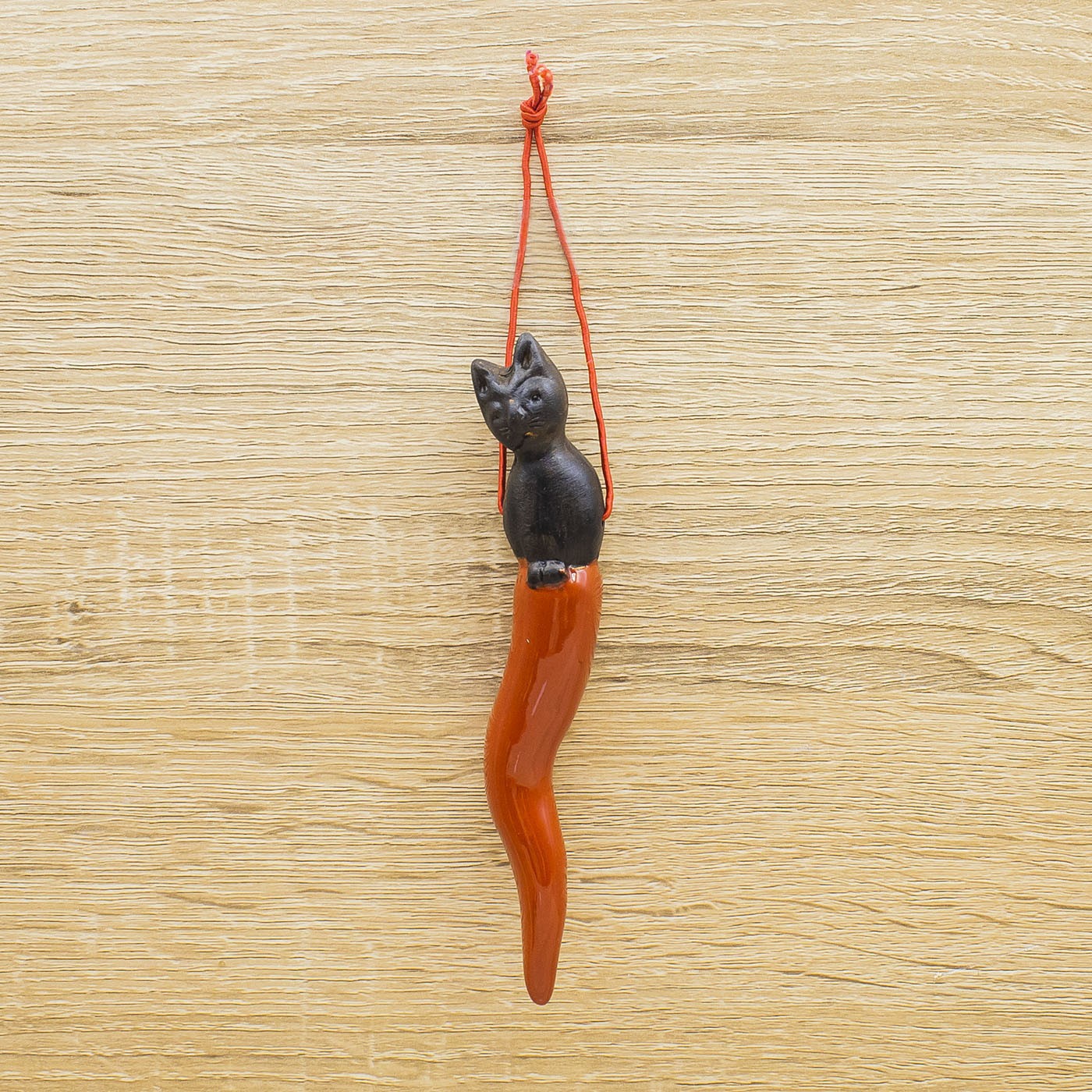 I gatti neri portano fortuna, così come il cornetto rosso tipico della tradizione partenopea. Per questo Macrì li ha uniti in una creazione artigianale stupenda, realizzata in terracotta da Maestri artigiani napoletani, smaltata in seconda cottura e poi dipinta a mano.