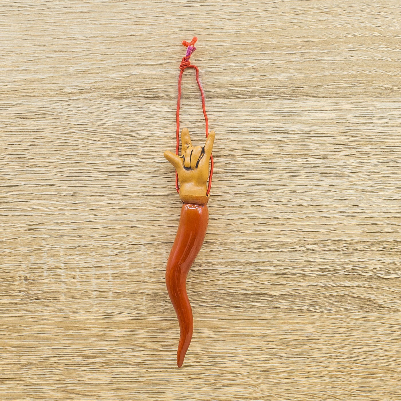 Il cornetto portafortuna di Macrì con manina nella parte superiore è un oggetto scaramantico, caratterizzato da un design esclusivo e da una lavorazione artigianale.