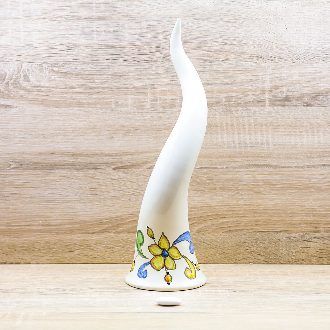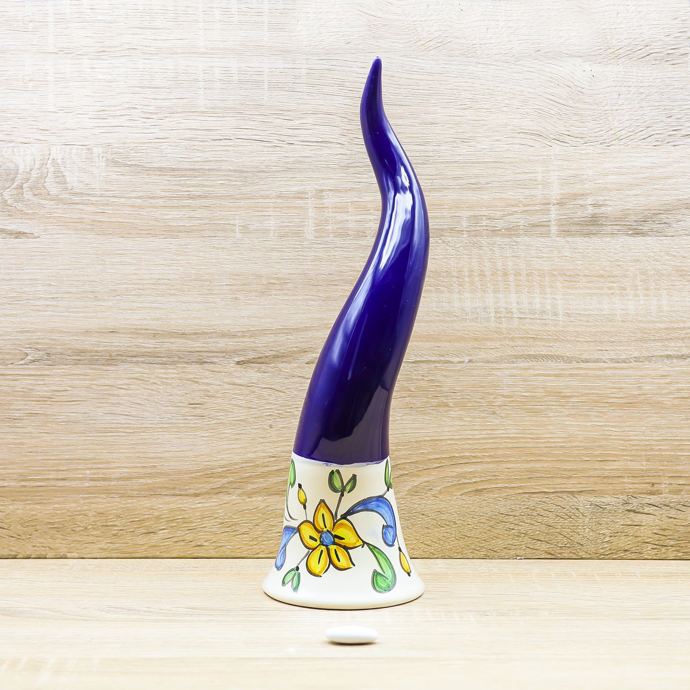 Corno Grande dal colore Bianco, Blu o Rosso con decori di Fiori, firmato Il Borgo di Vietri.