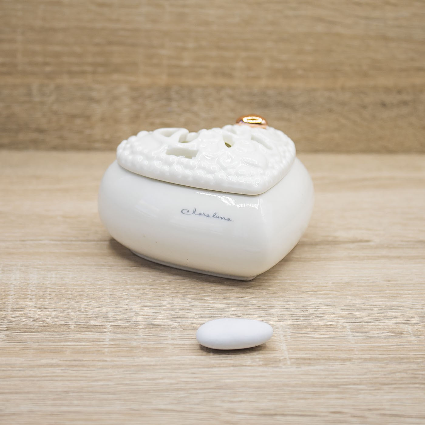 Il prezzo con la confezione comprende: Astuccio, Doppio Nastro, Gessetto o Fiore a Scelta, Portaconfetti e 5 Confetti.