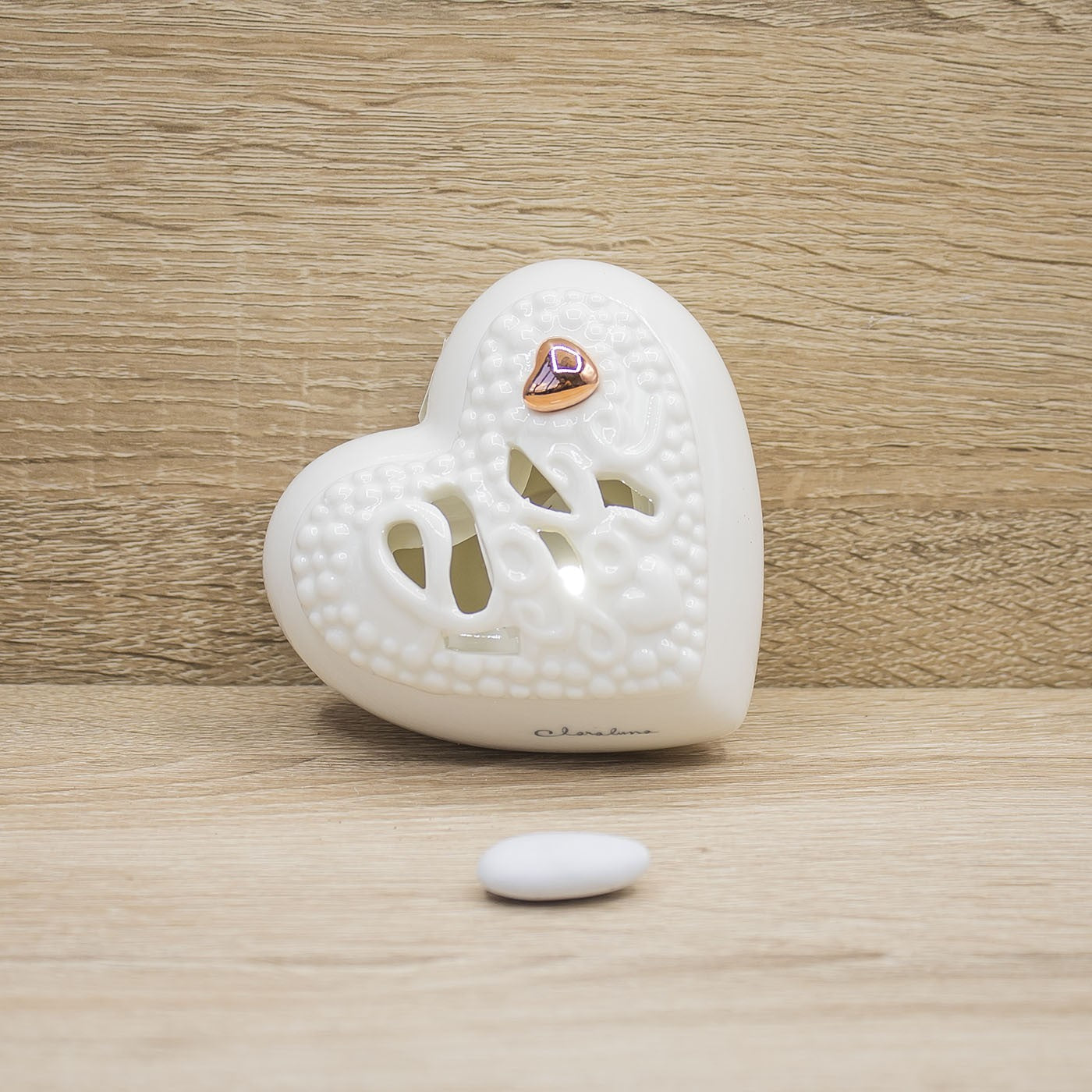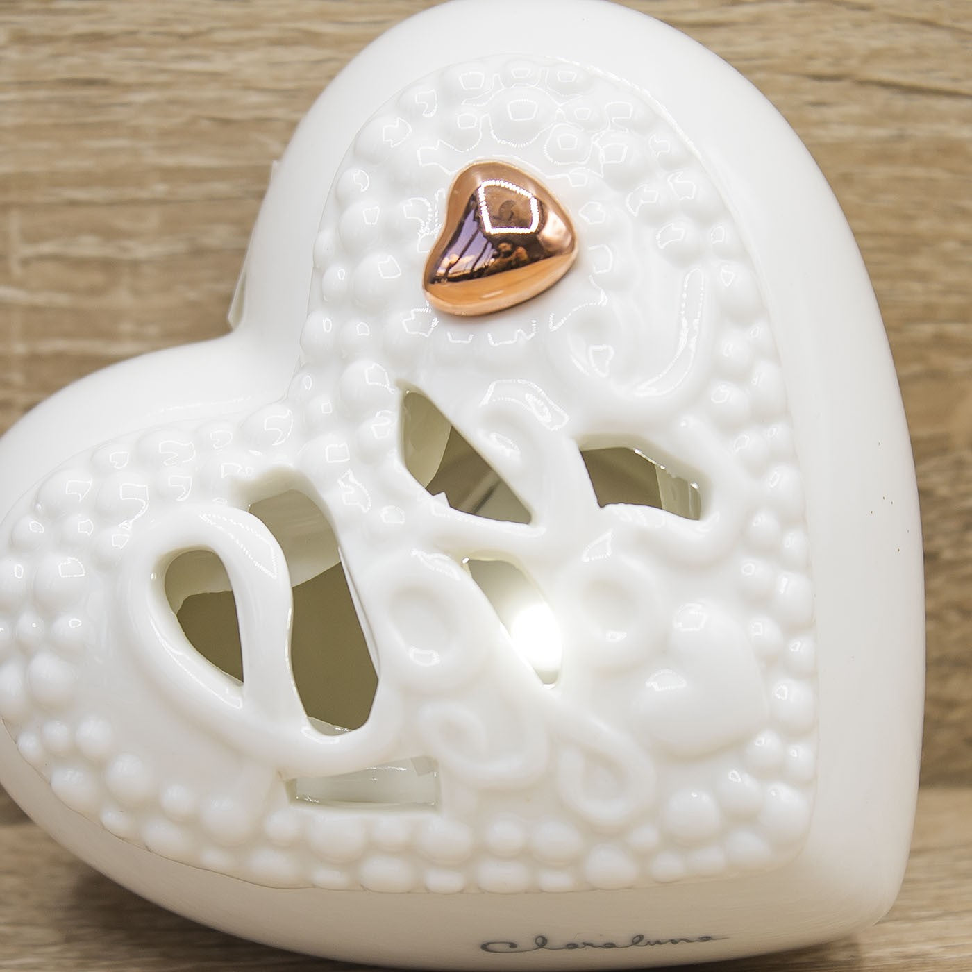 Cuore Led bianco con scritta "Love You" in rilievo e cuoricino nel colore oro rosa, firmato Claraluna.