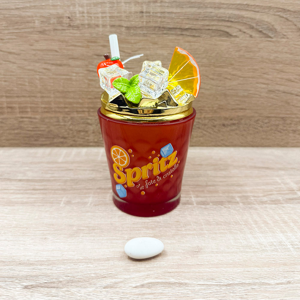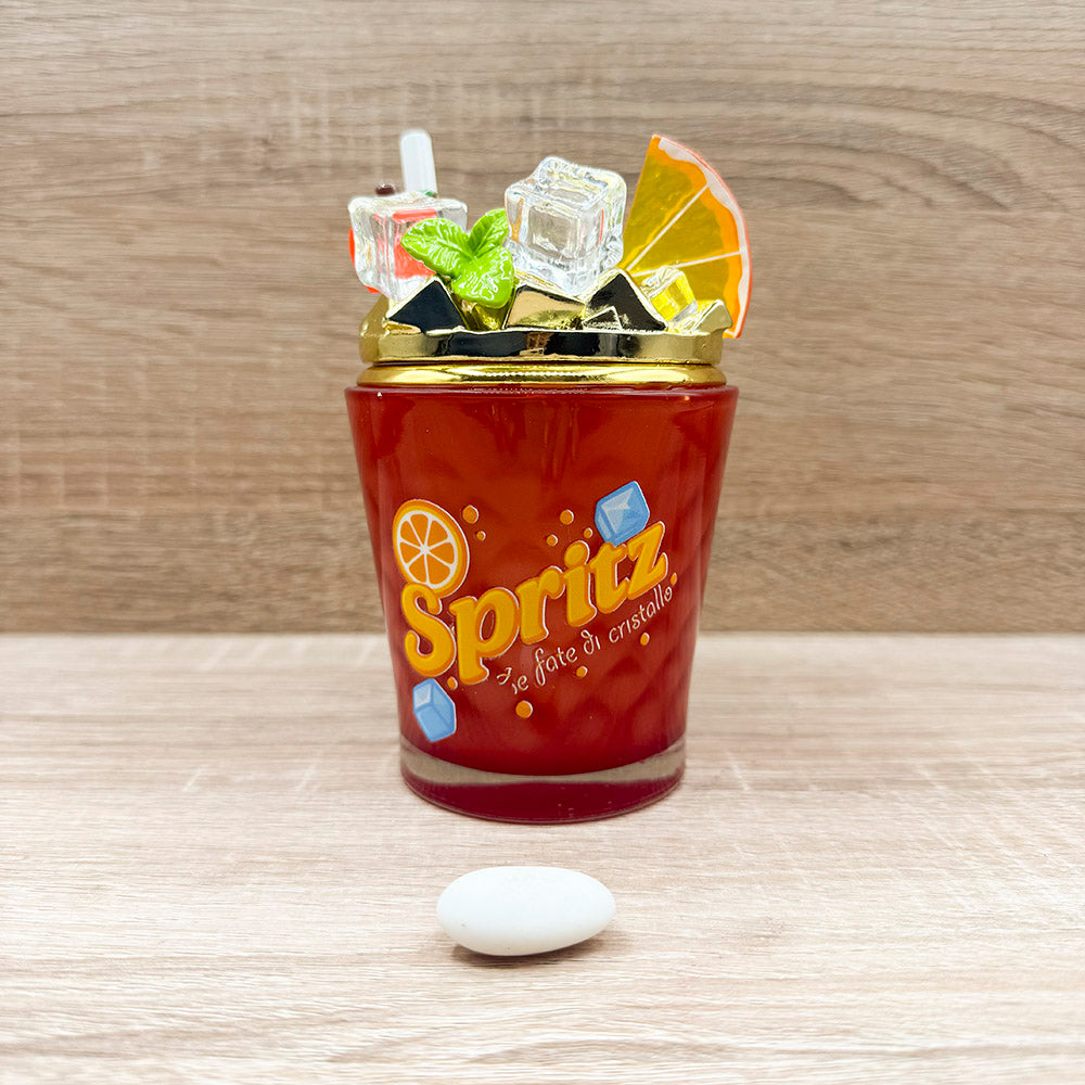 Diffusore in vetro con grafica “Spritz” e decorazione sul tappo a forma di cubetti di ghiaccio e fetta di limone. Un accessorio originale e colorato, ideale per profumare ambienti aggiungendo un tocco fresco e simpatico.