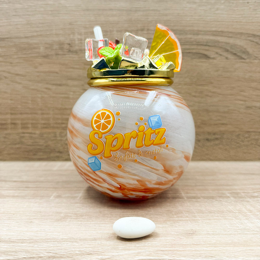 Diffusore in vetro con grafica “Spritz” e decorazione sul tappo a forma di cubetti di ghiaccio e fetta di limone. Un accessorio originale e colorato, ideale per profumare ambienti aggiungendo un tocco fresco e simpatico.