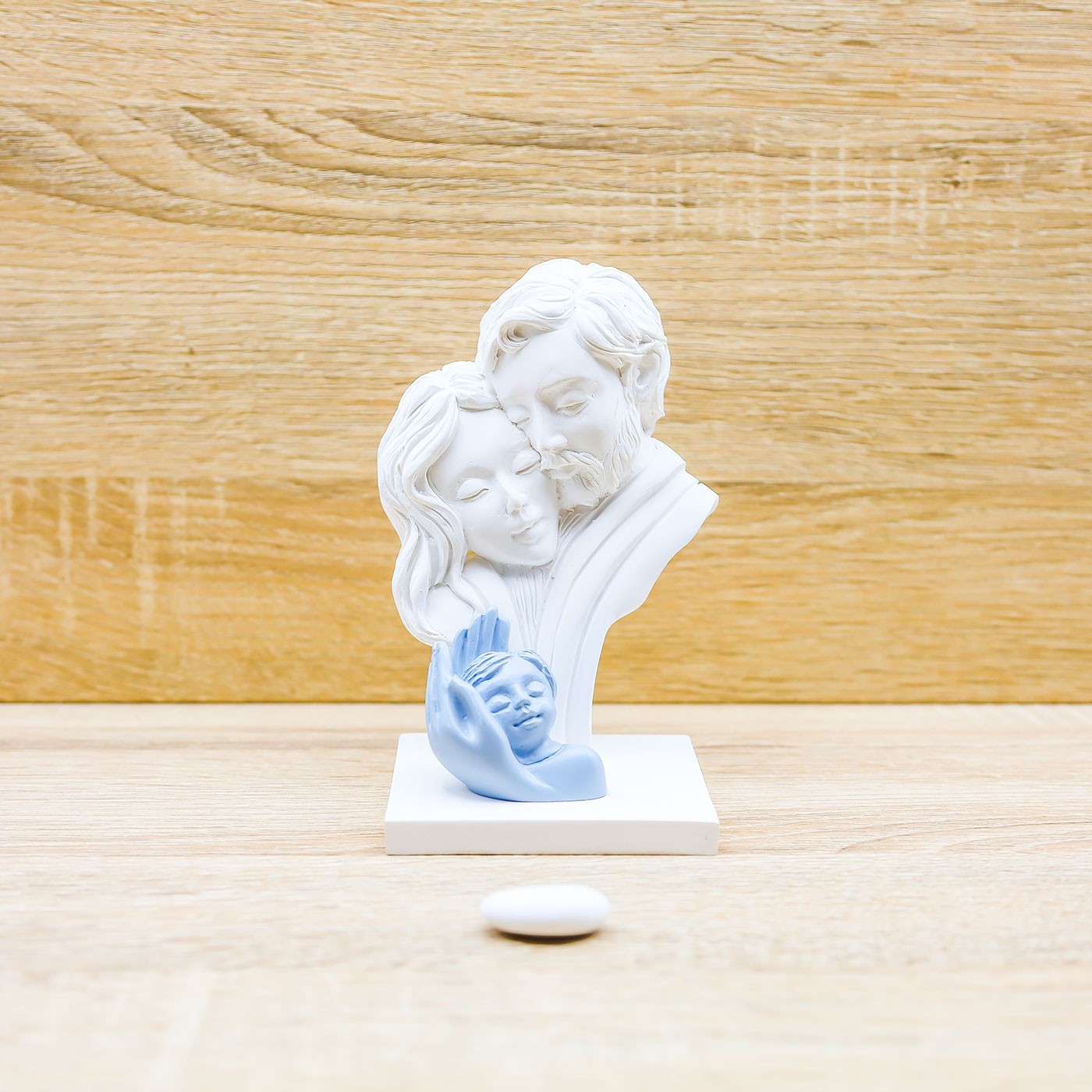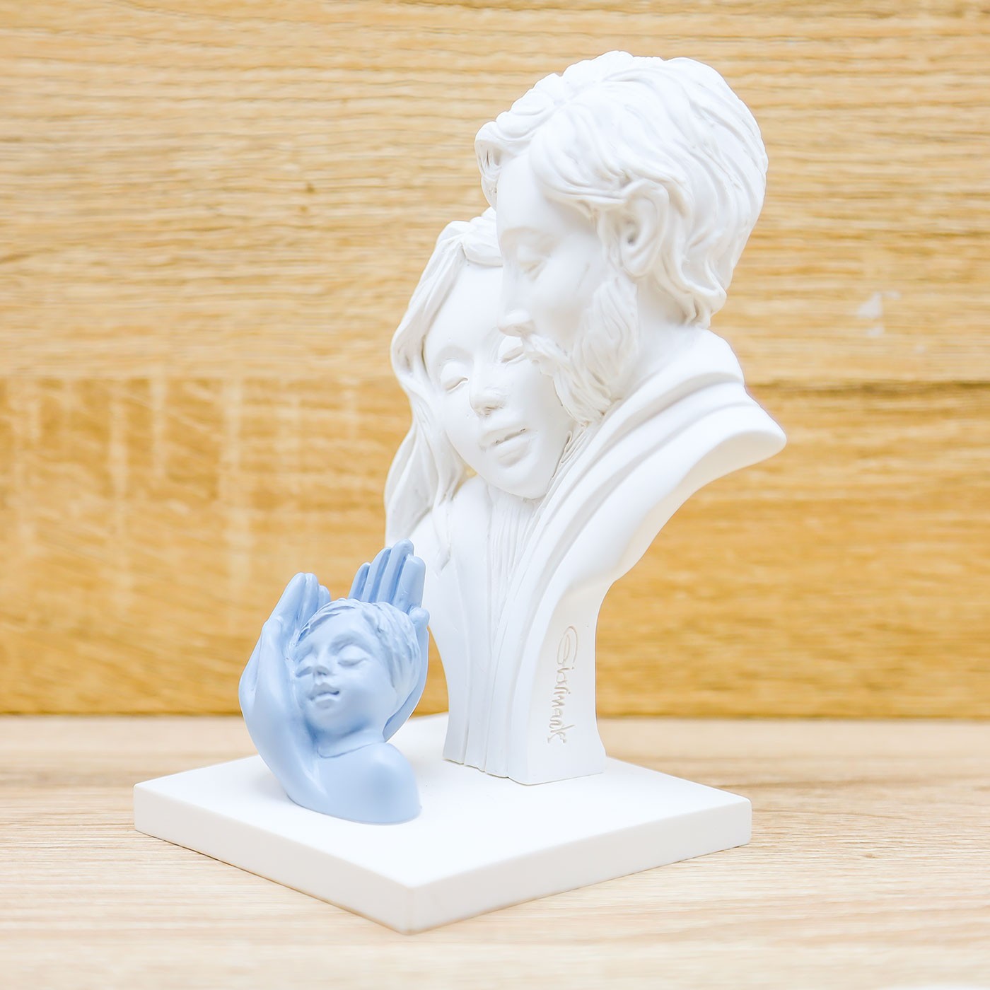 Statuina Stilizzata di una famiglia e il/la bimbo/a che viene sorretto dalle "mani protettrici", firmato Giovinarte.