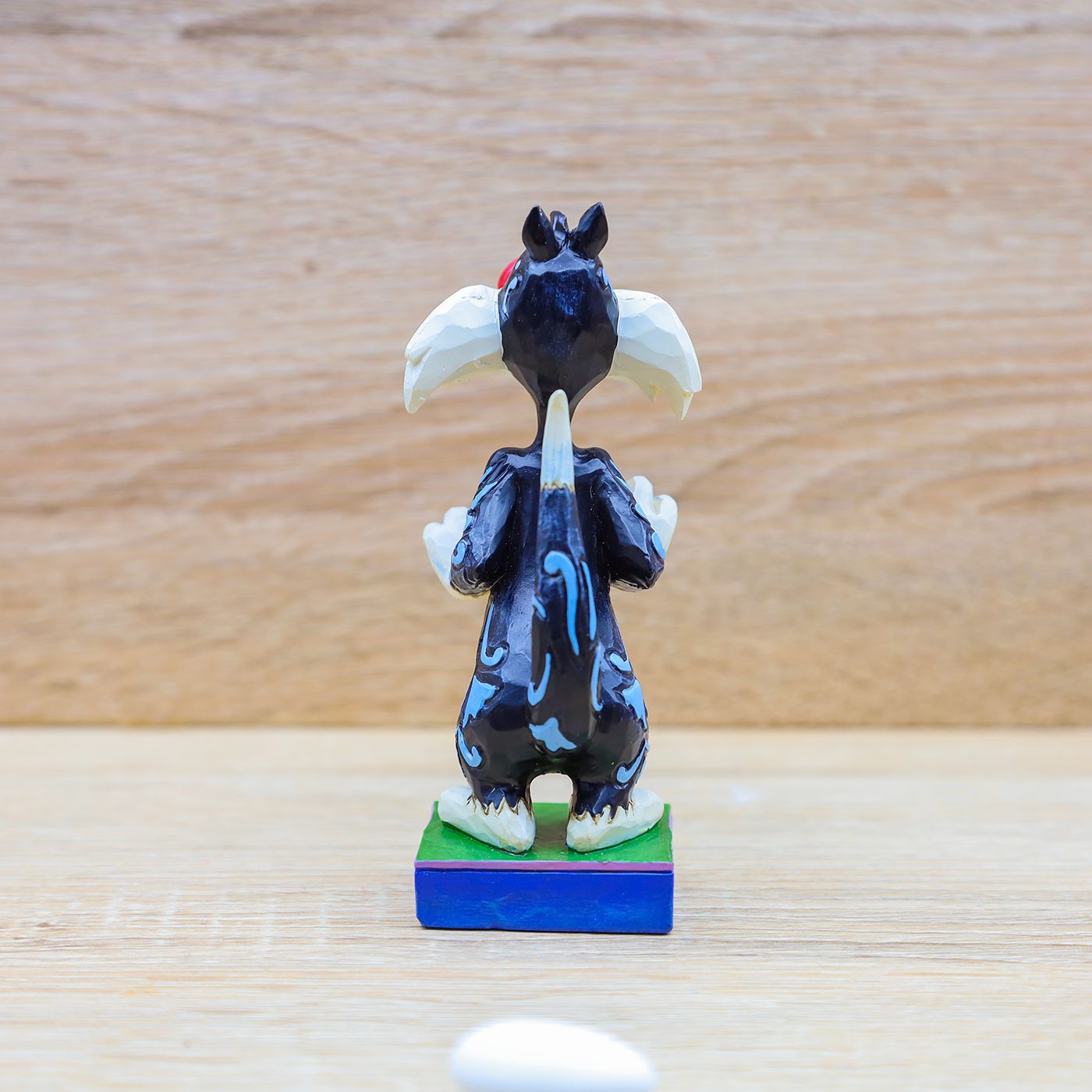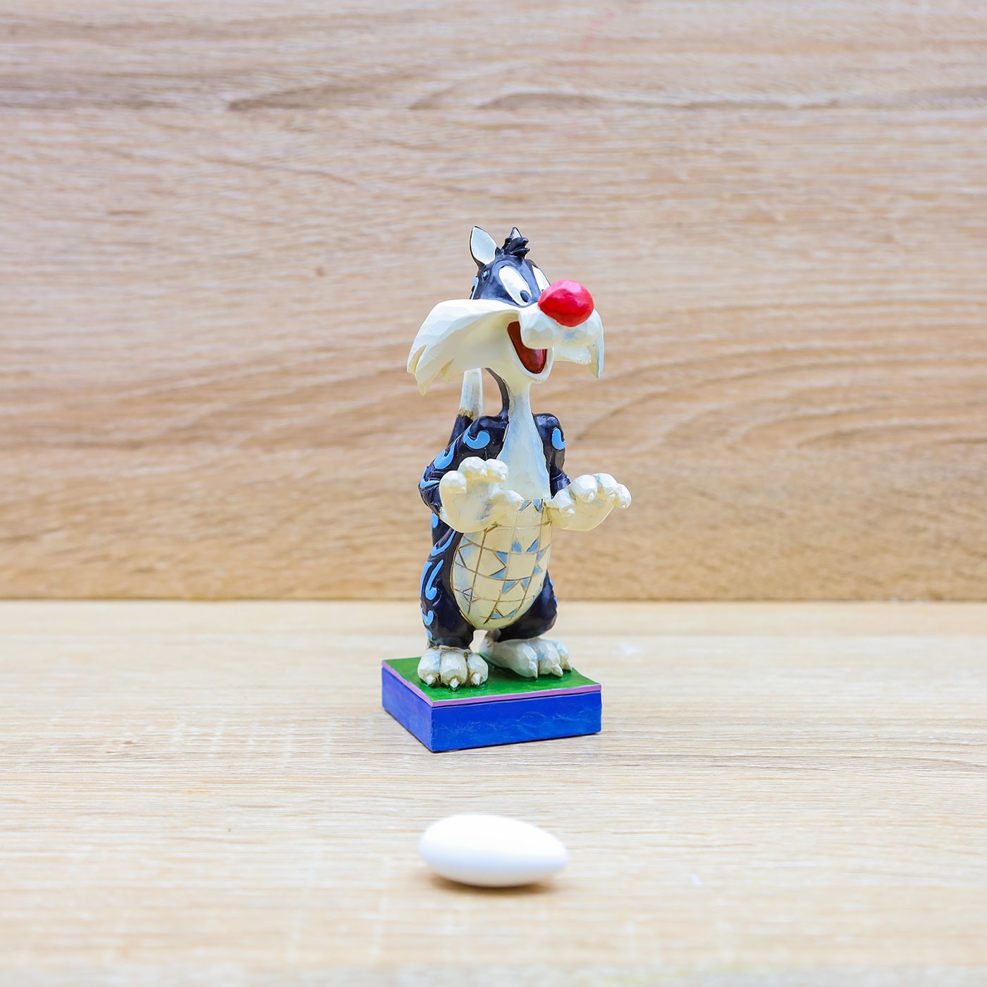 Statuina del Gatto Silvestro che prepara una nuova strategia per catturare la sua preda Titti, il piccolo canarino, firmato Disney Traditions