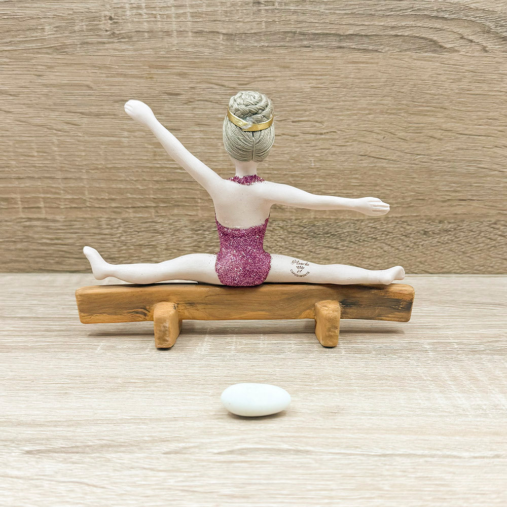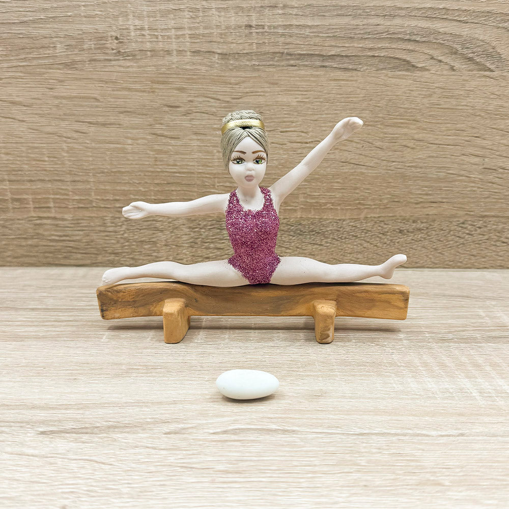 Statuina in porcellana raffigurante ginnasta. Abito glitterato rosa, firmato Averla Bomboniere.