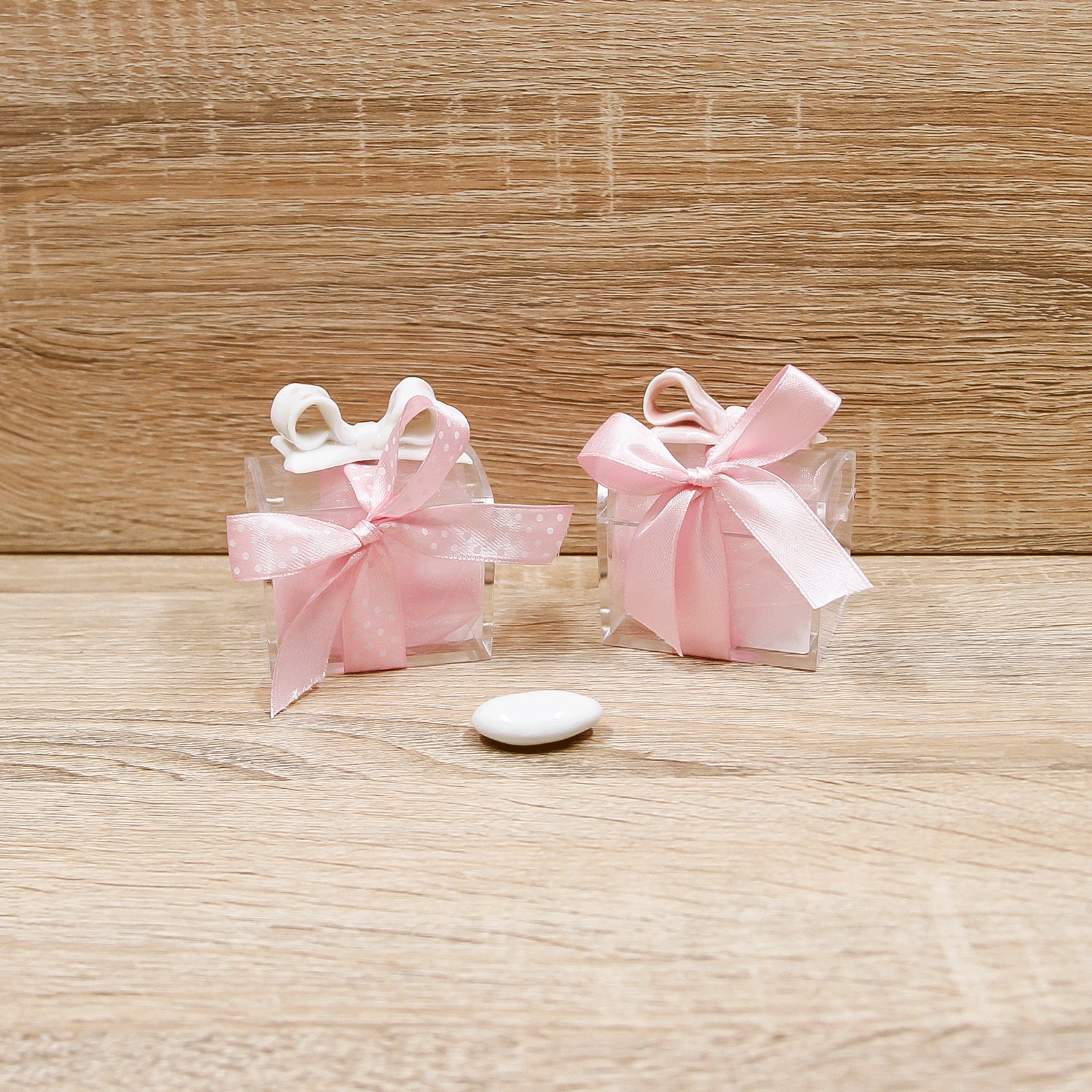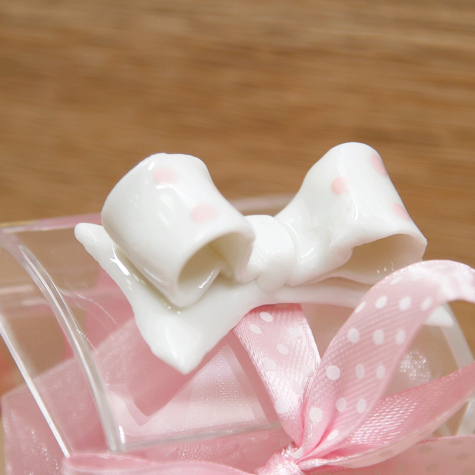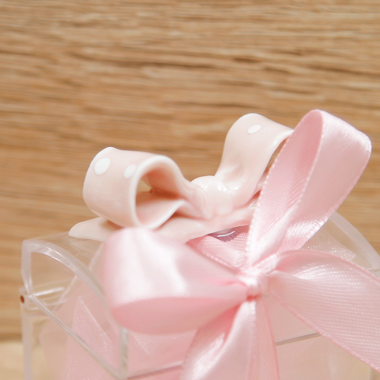 Portaconfetti Bauletto con Nastro e Applicazione di un fiocchetto in porcellana e colori assortiti.
