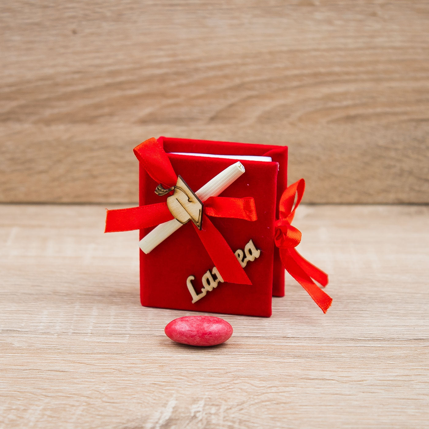 Portaconfetti Rosso Laurea con Cappello e Pergamena