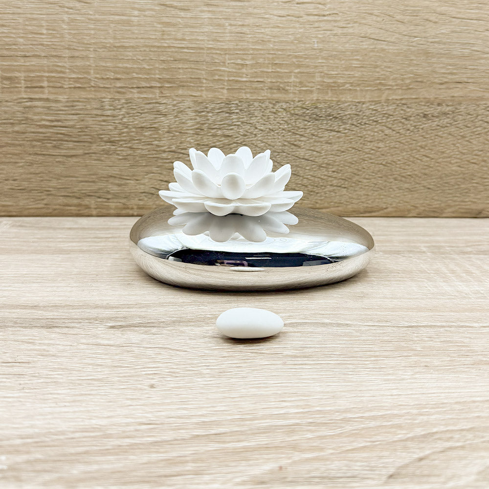 Profumatore Argento,con fiore di loto bianco, firmato Claraluna.