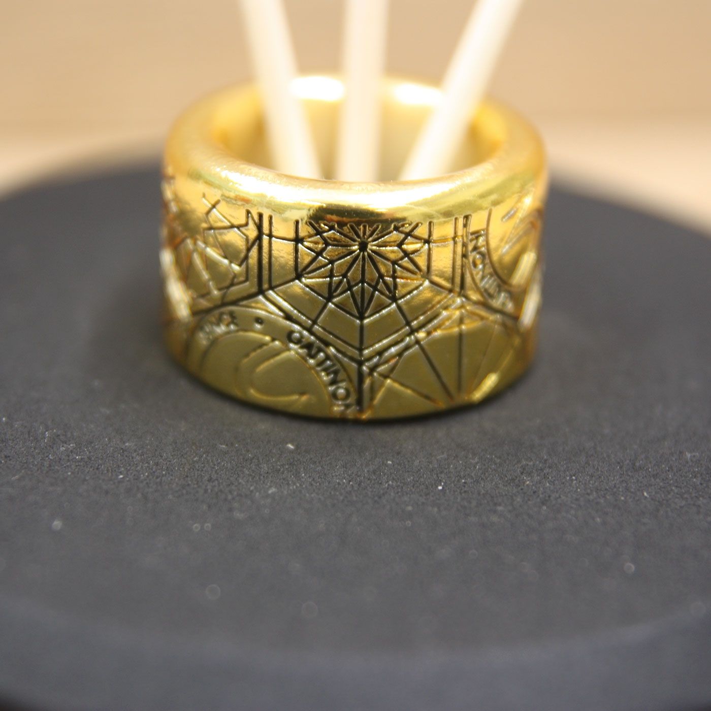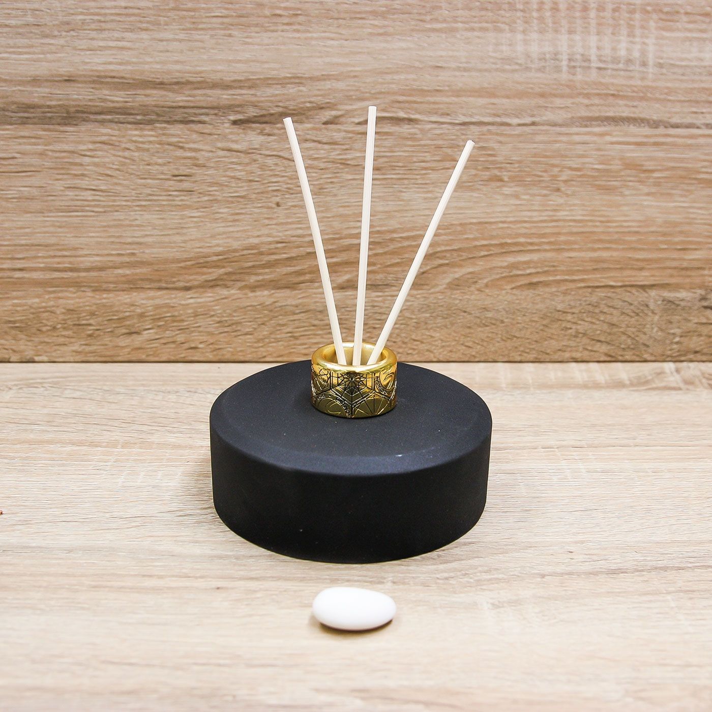 Profumatore nero basso dalla forma esagonale, tappo color oro con decori incisi, firmato Gattinoni.