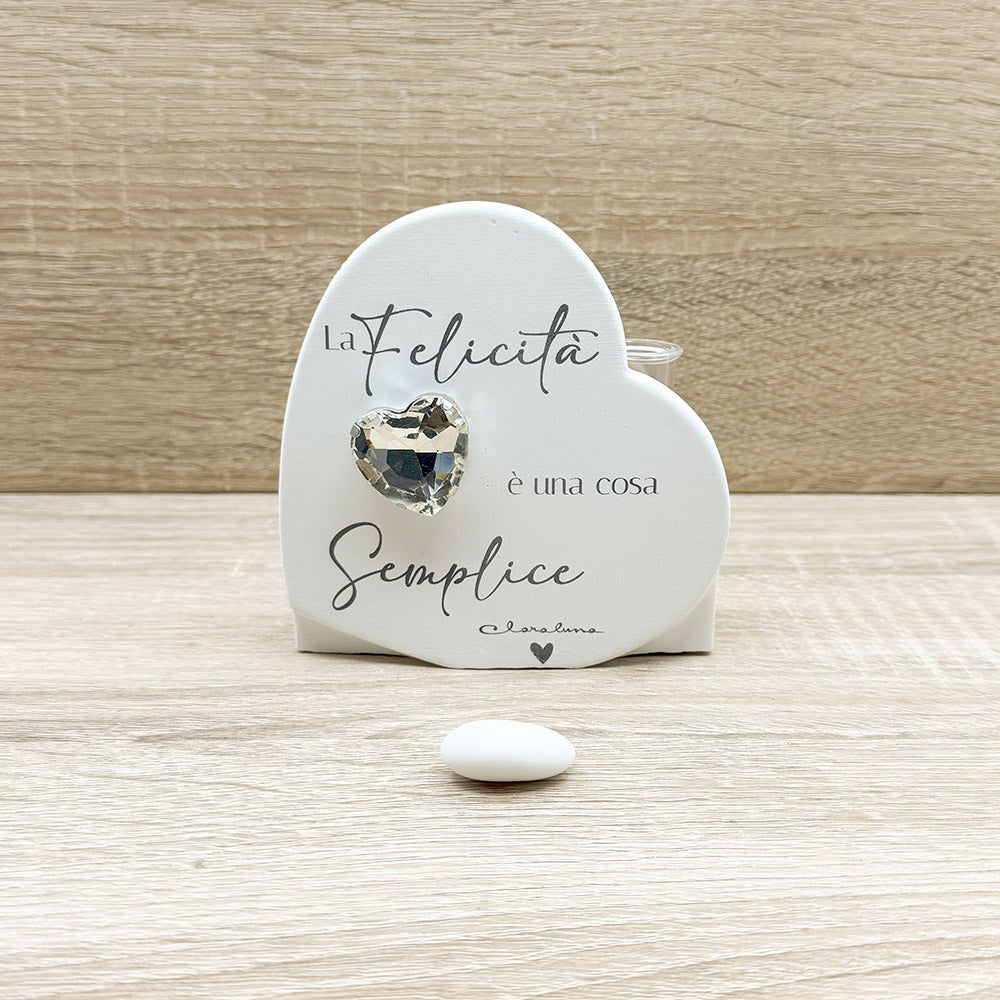 Profumatore Bianco con Strass Cuore Argento con frase : " La felicità è una cosa Semplice ", firmato Claraluna.