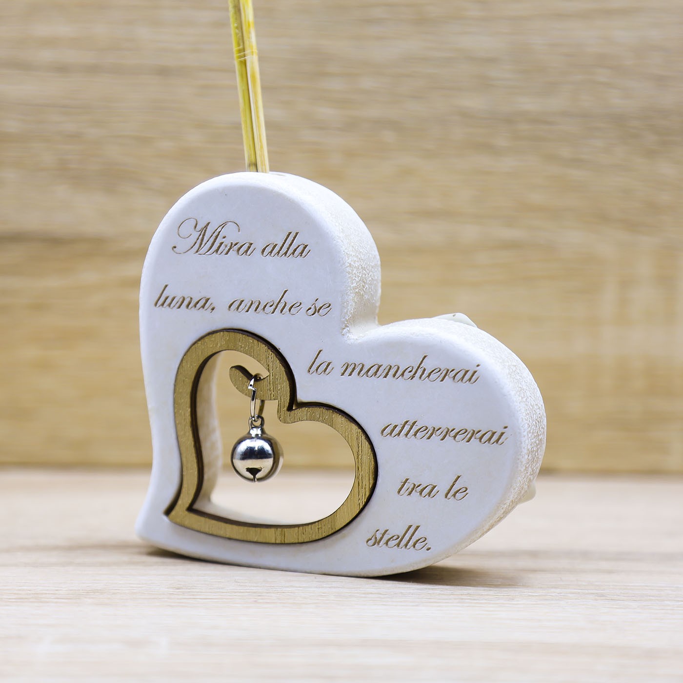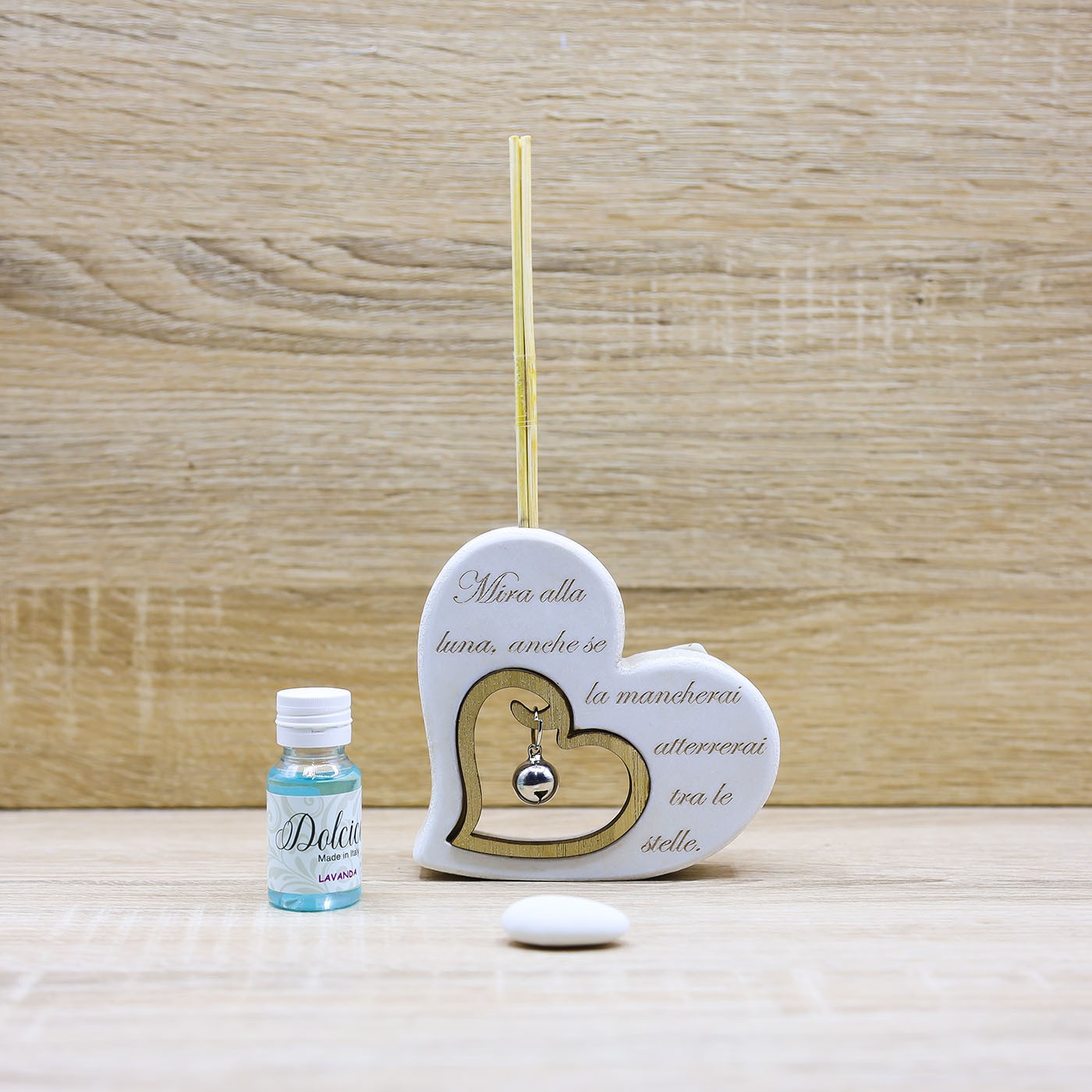 Profumatore a forma di Cuore, ciondolo con sonaglino e frase "Mira alla luna, anche se la mancherai atterrerai tra le stelle", firmato Dolcicose