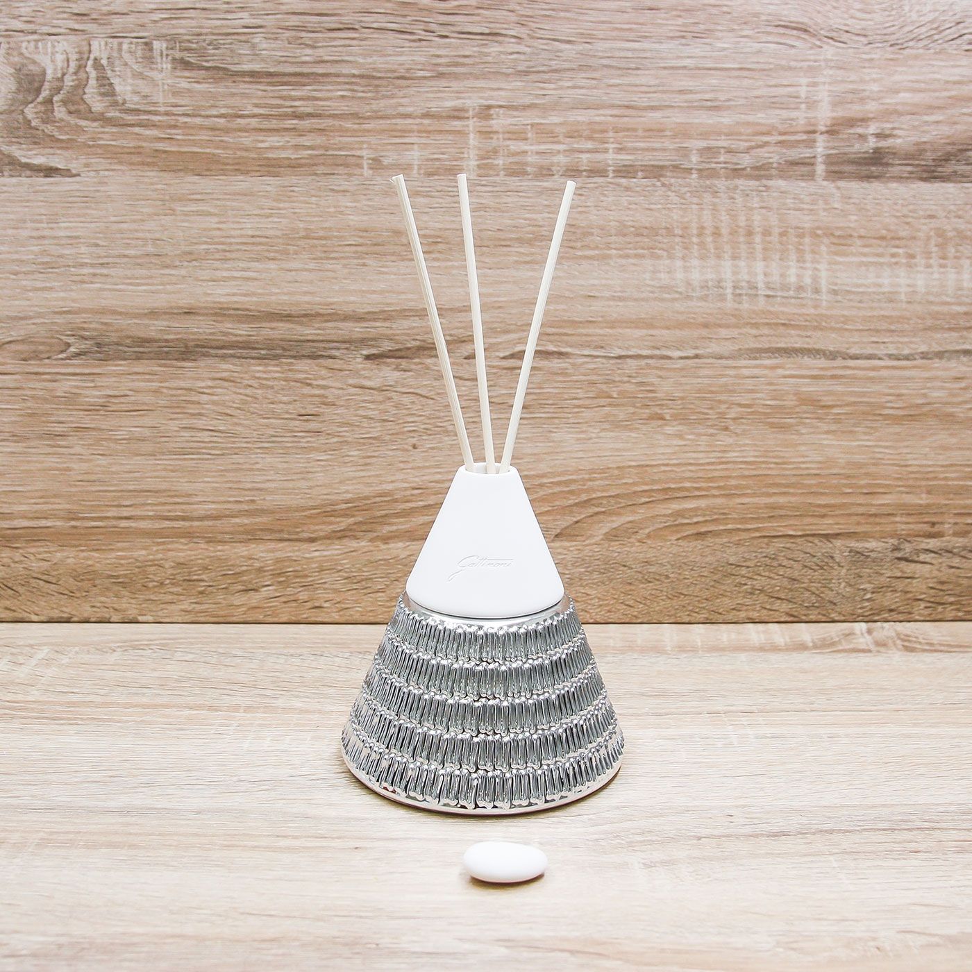 Profumatore dalla forma conica, con base color argento con firma Gattinoni incisa.