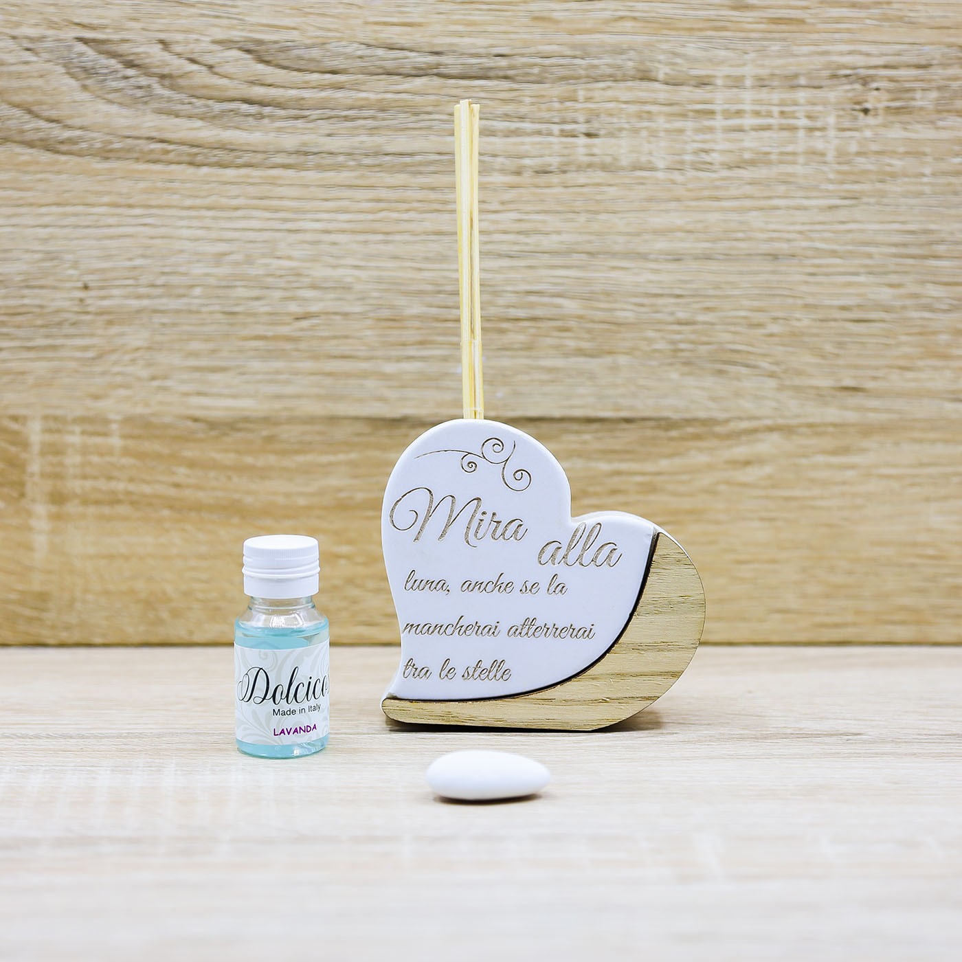 Profumatore Cuore e frase "Mira alla luna, anche se la mancherai atterrerai tra le stelle", firmato Dolcicose