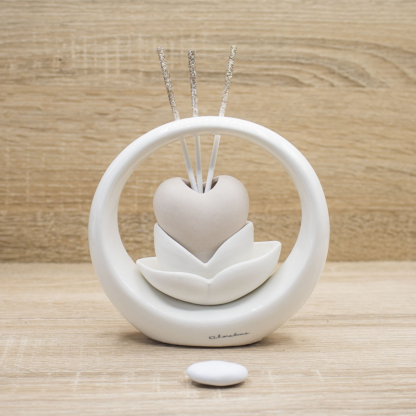 Il prezzo con la confezione comprende: Profumazione, Bastoncini Glitterati, Astuccio, Doppio Nastro, Gessetto o Fiore a Scelta, Portaconfetti e 5 Confetti.