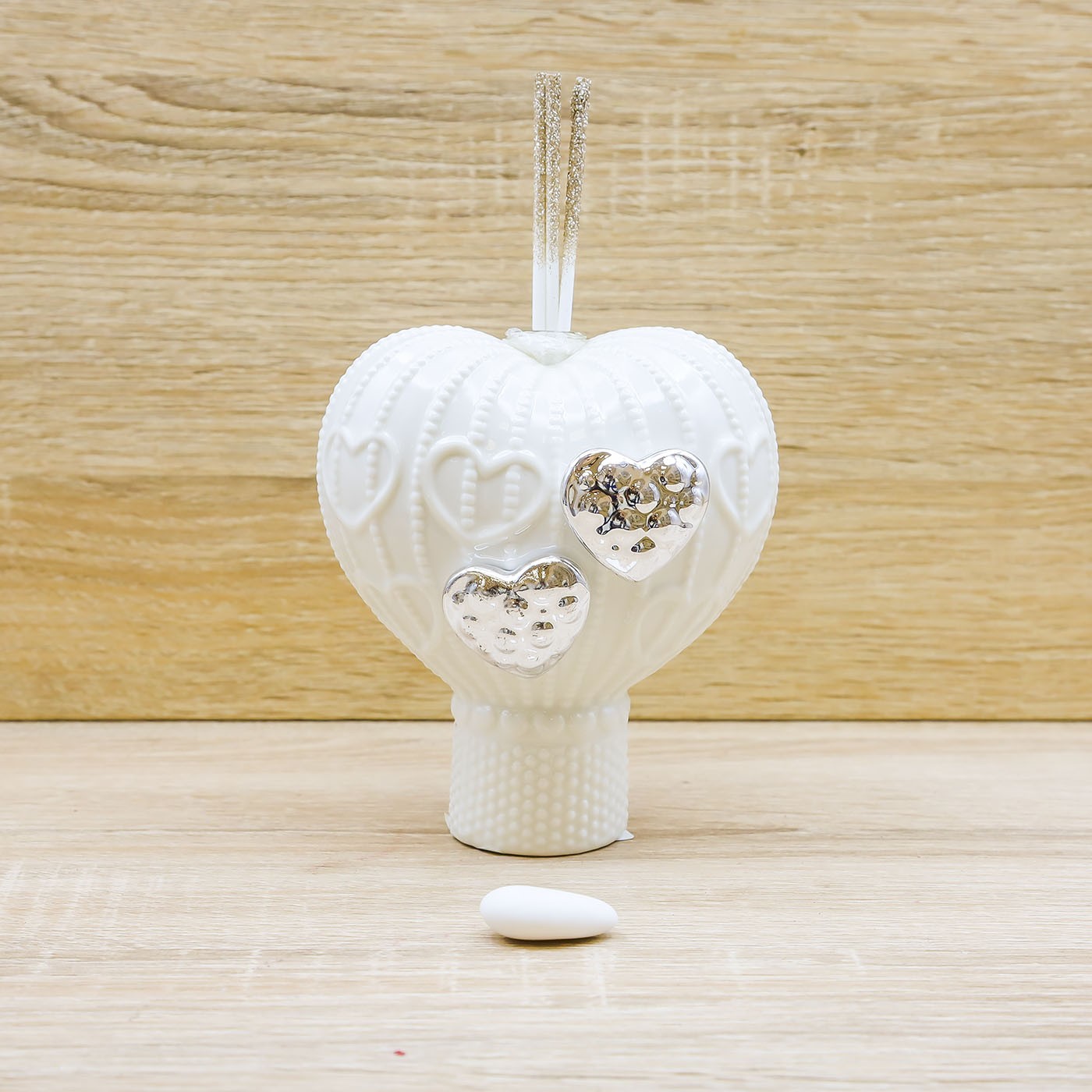 Profumatore a forma di Mongolfiera con decori di cuori in rilievo e due cuori argento, firmato Claraluna.