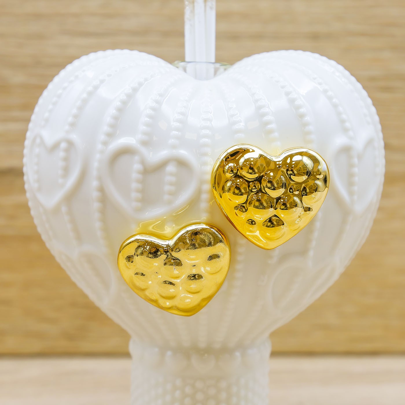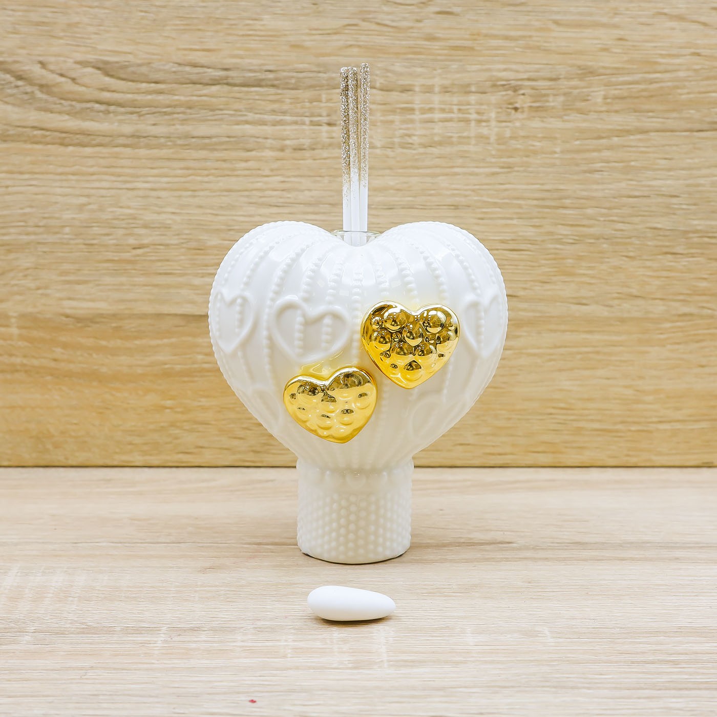 Profumatore a forma di Mongolfiera con decori di cuori in rilievo e due cuori oro, firmato Claraluna.