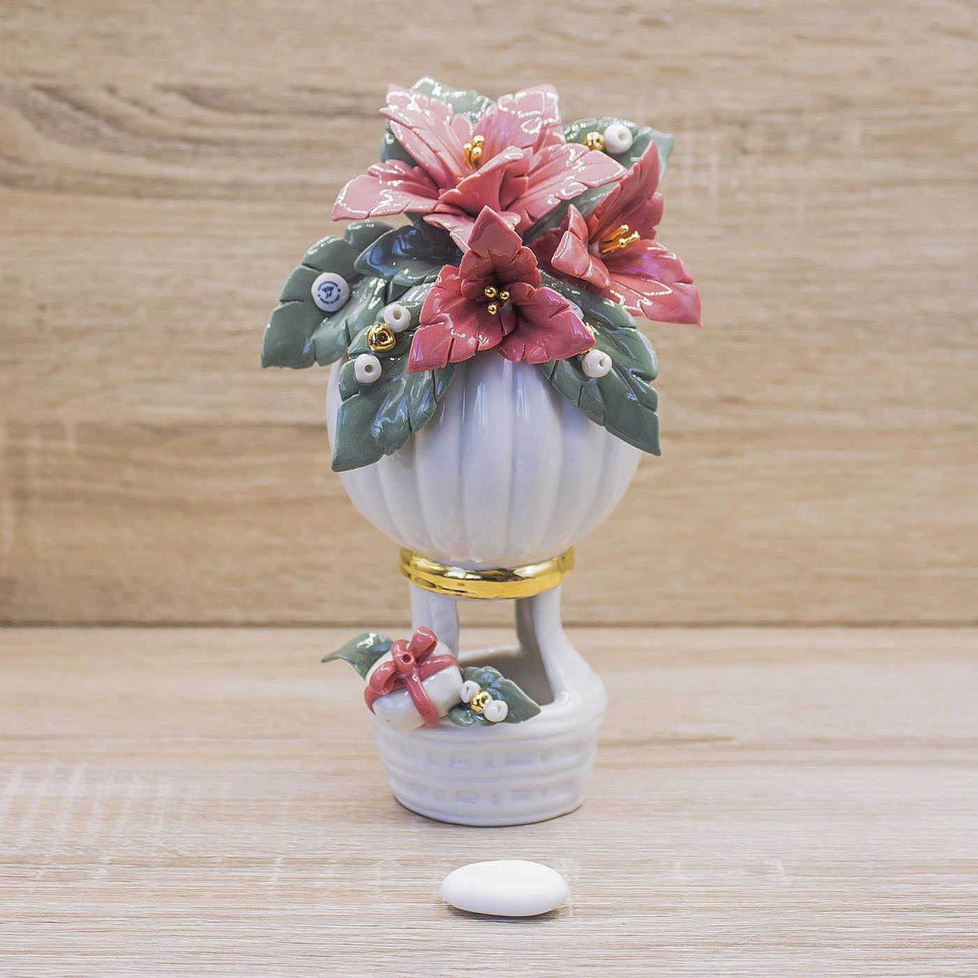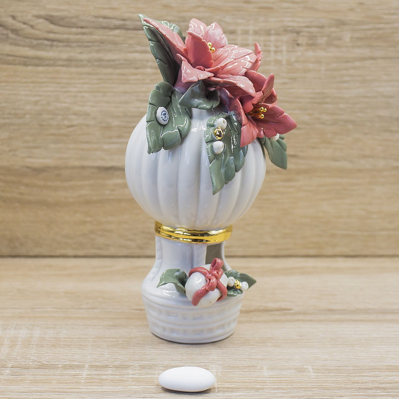 Profumatore Mongolfiera Rossa con Stelle di Natale Porcellana di Capodimonte