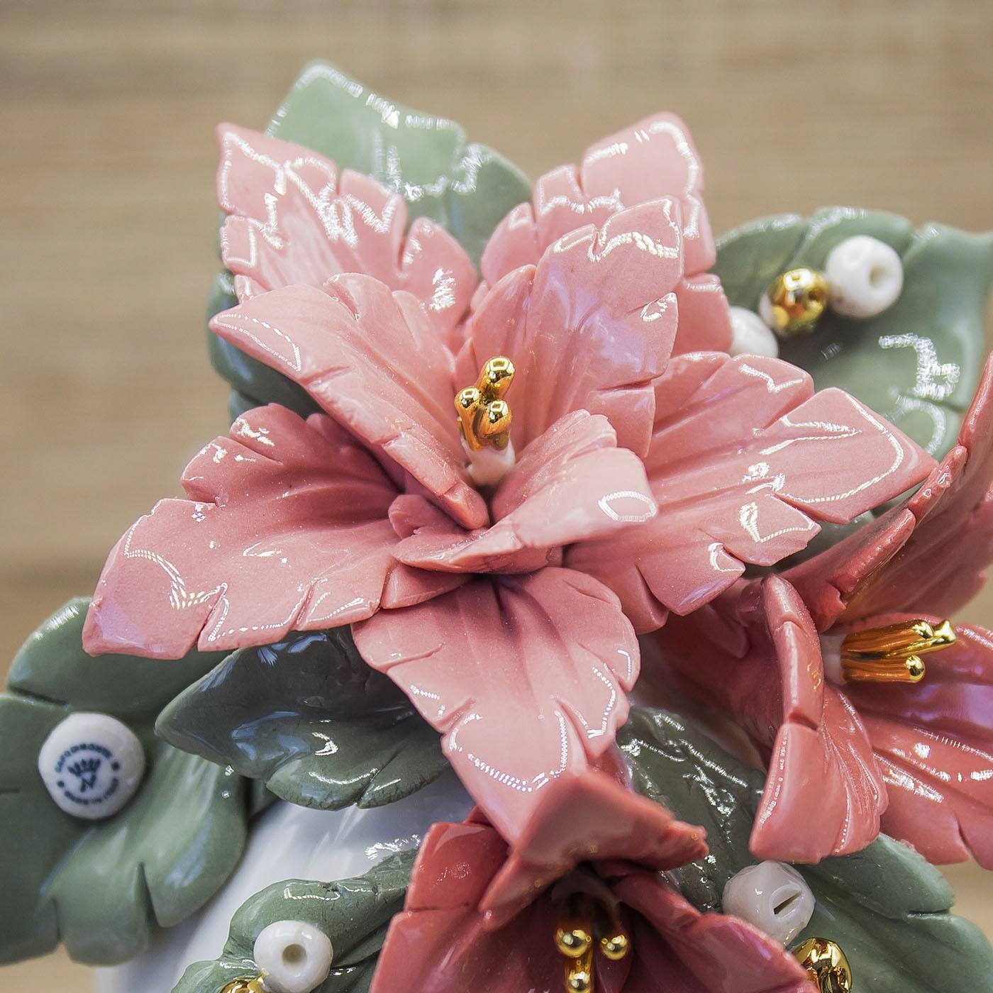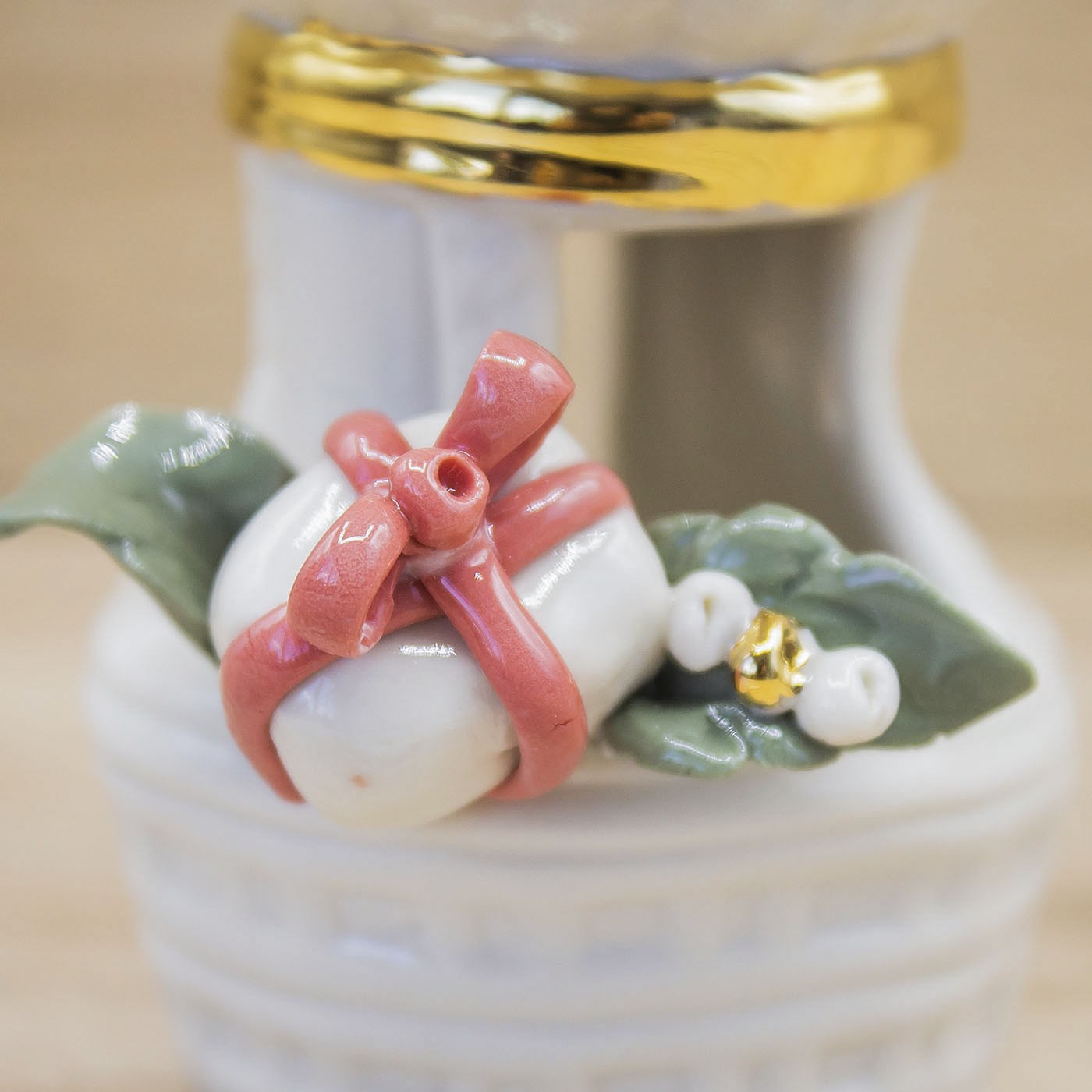 Profumatore con Stelle di Natale, foglie e pacchi regalo con dettagli in Oro Zecchino 24kt. Porcellana di capodimonte dalla rifinitura lucida, firmato Bella Napoli.