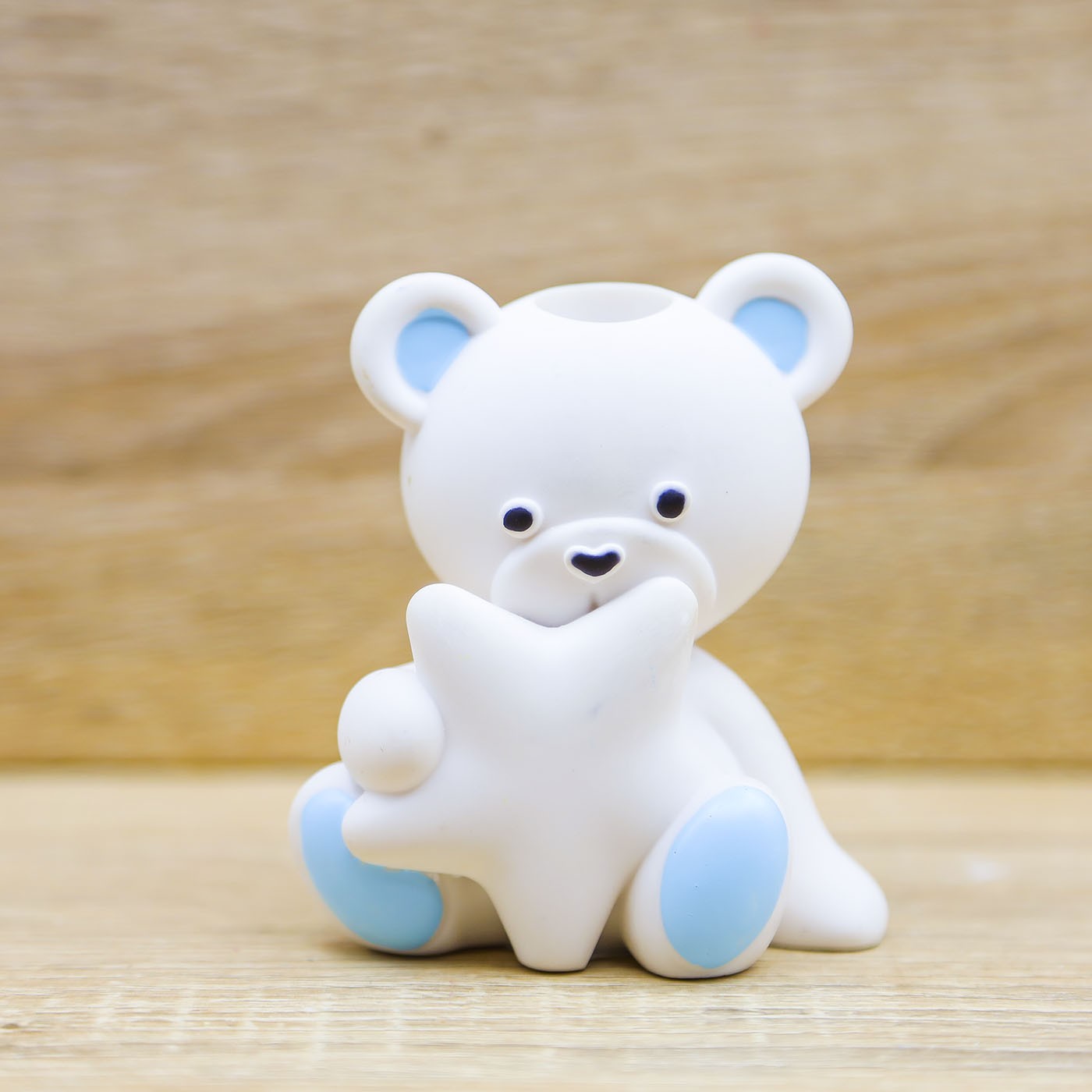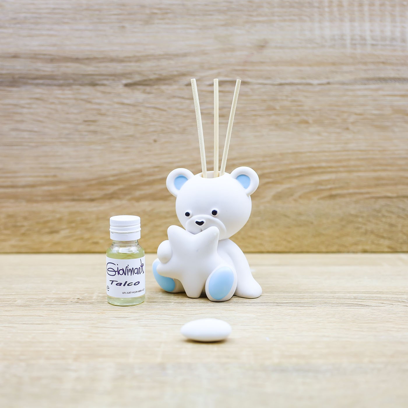 Profumatore di un dolce orsetto con orecchie e zampe di colore celeste e una stella tra le zampe.