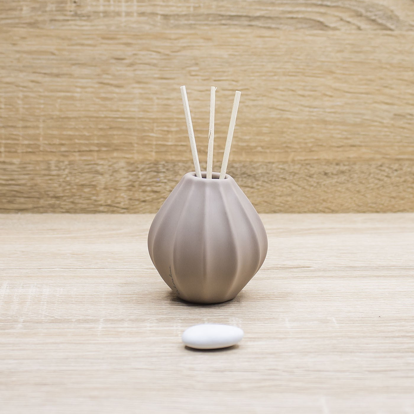 Profumatore in porcellana di colore tortora, firmato Claraluna.