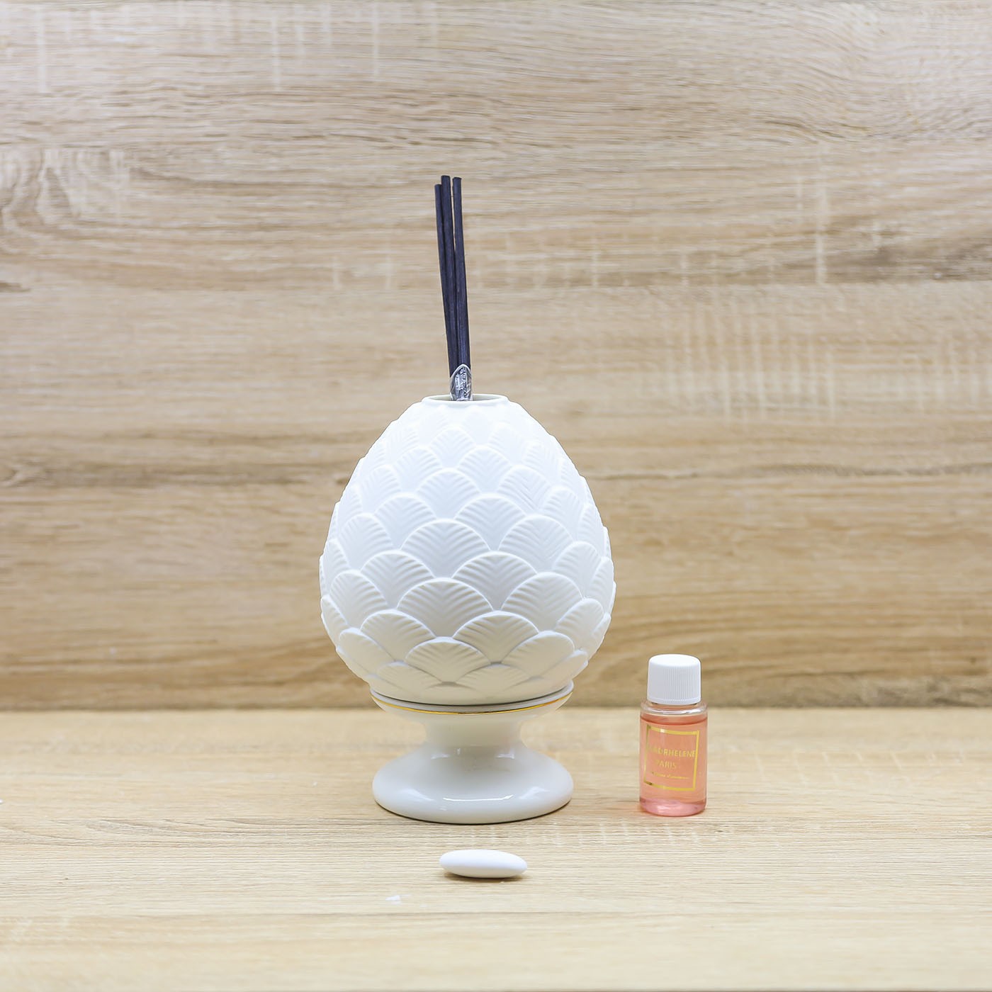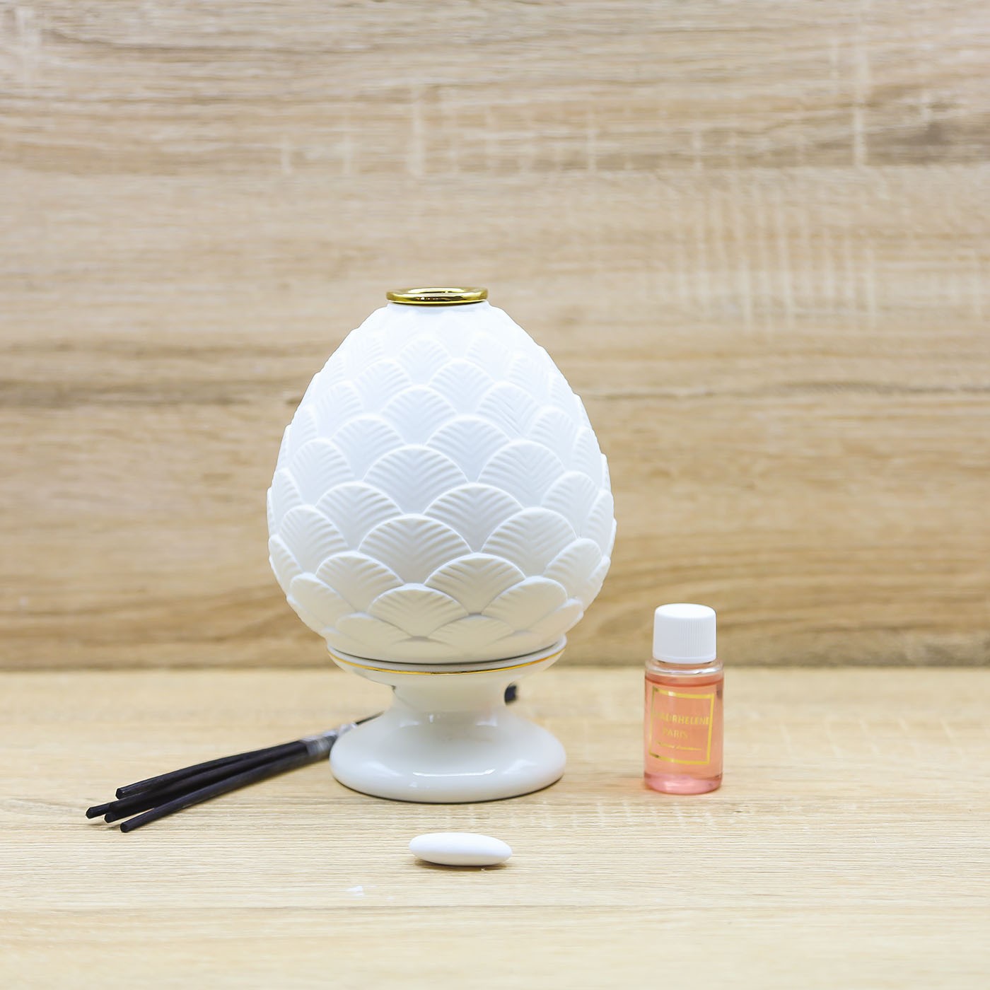 Profumatore a forma di pomo con piedino e decoro color oro, firmato Madrhélen.