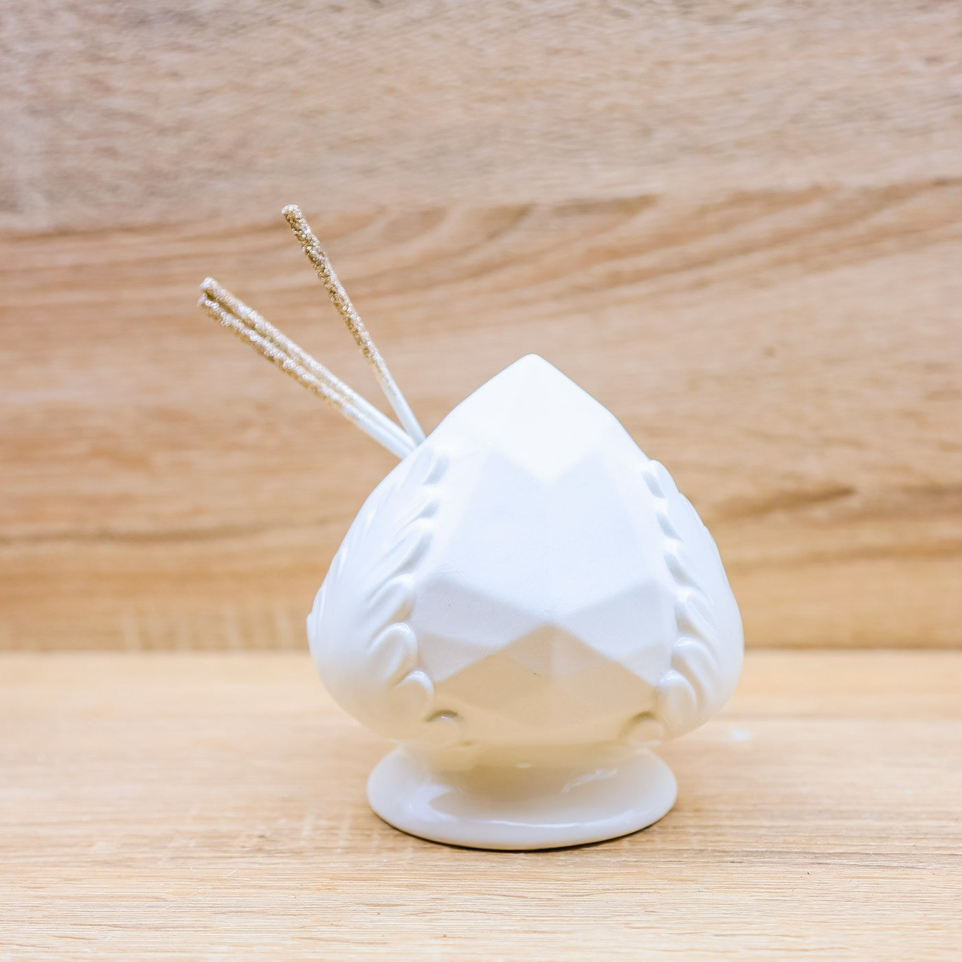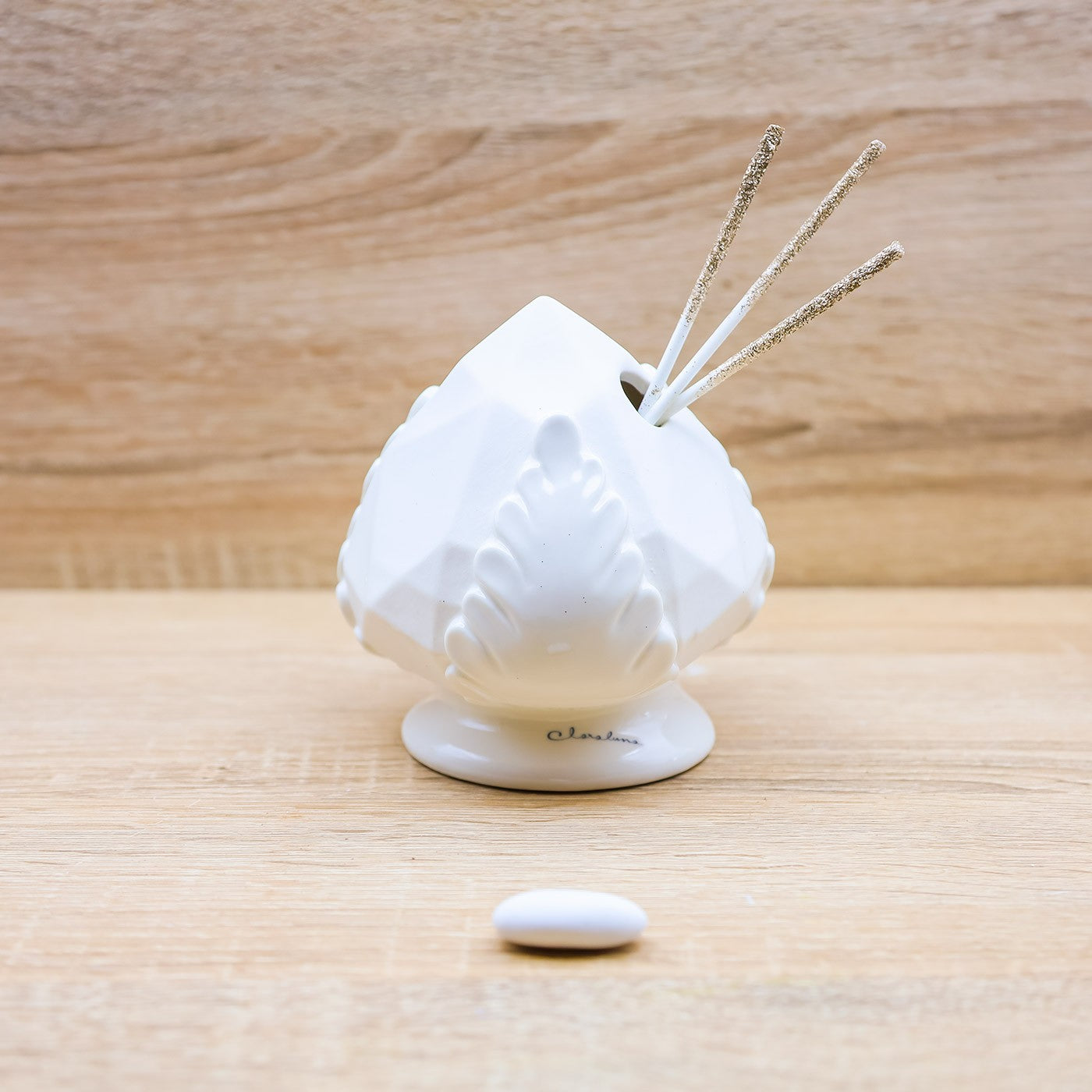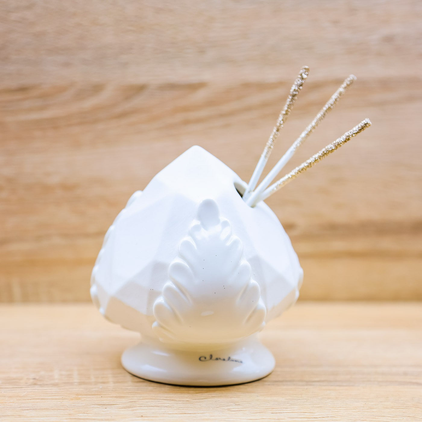 Profumatore a forma di pumo/pigna di colore bianco, firmato Claraluna.