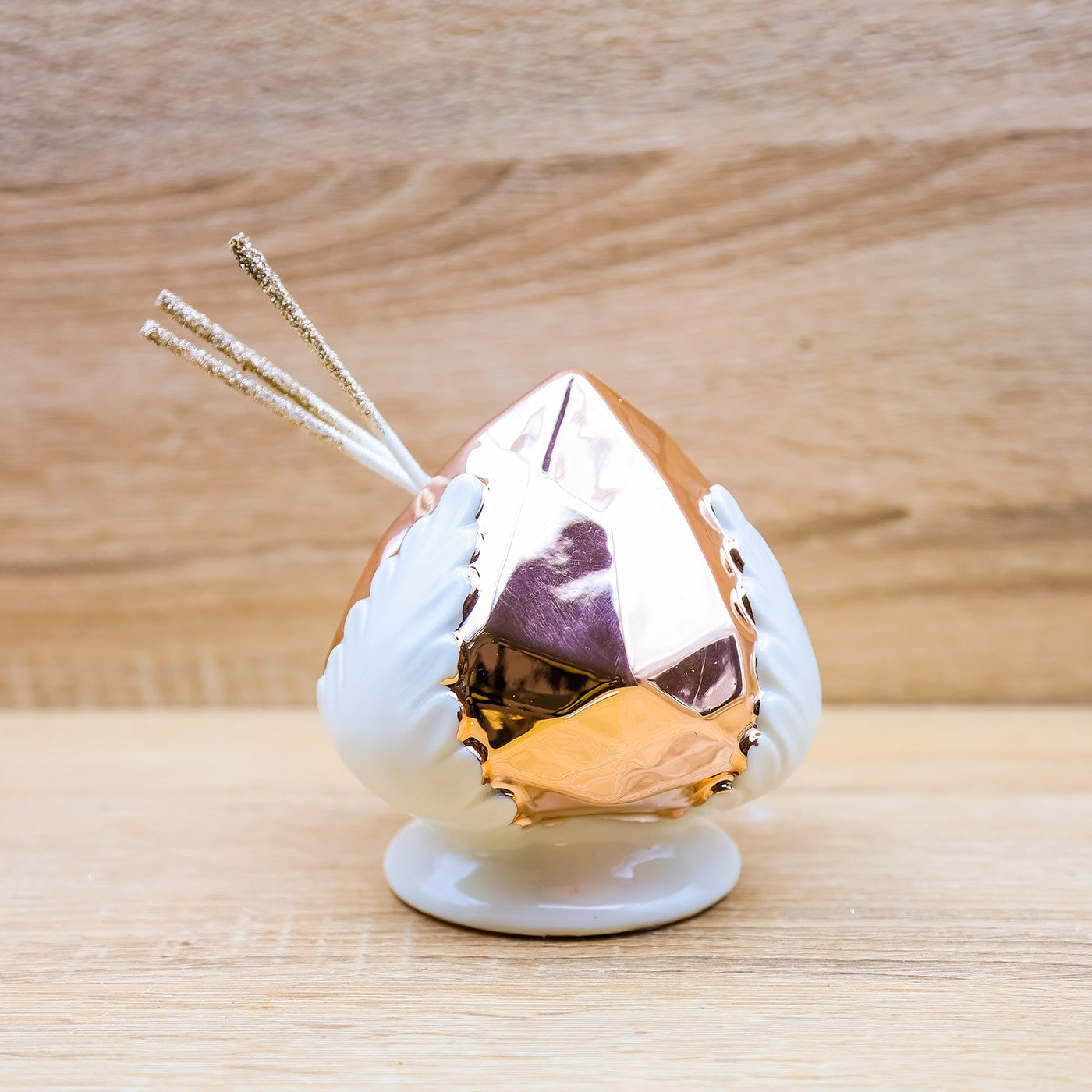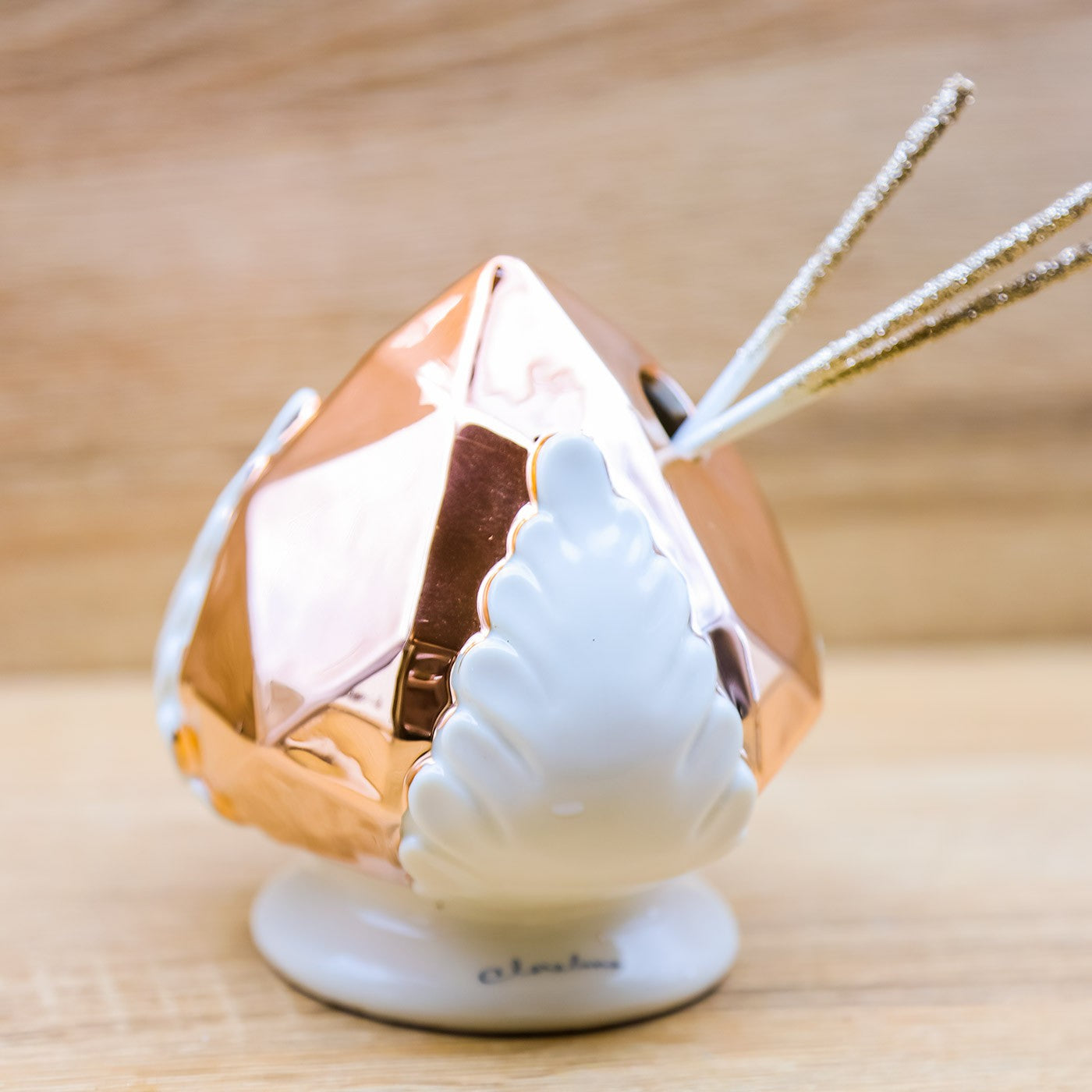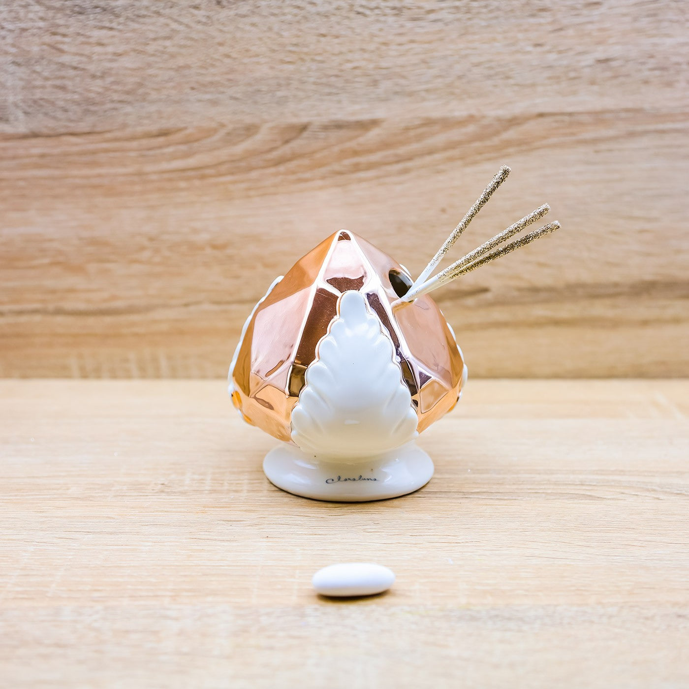 Profumatore a forma di pumo/pigna di colore oro rosa e bianco, firmato Claraluna.