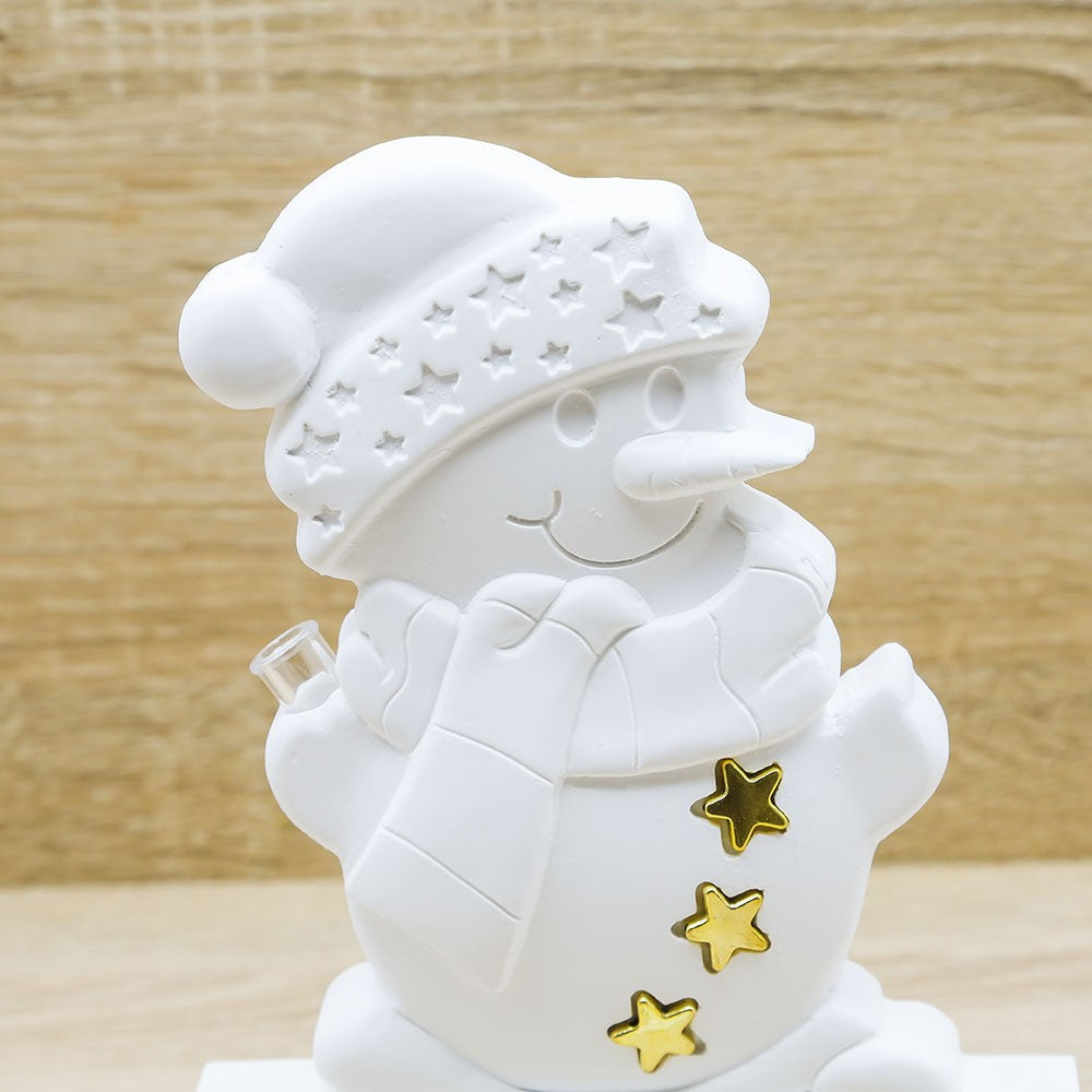 Profumatore a forma di Pupazzo di Neve e stelline dorate, firmato Claraluna Christmas. Ideale come Bomboniera Tema Natalizio.