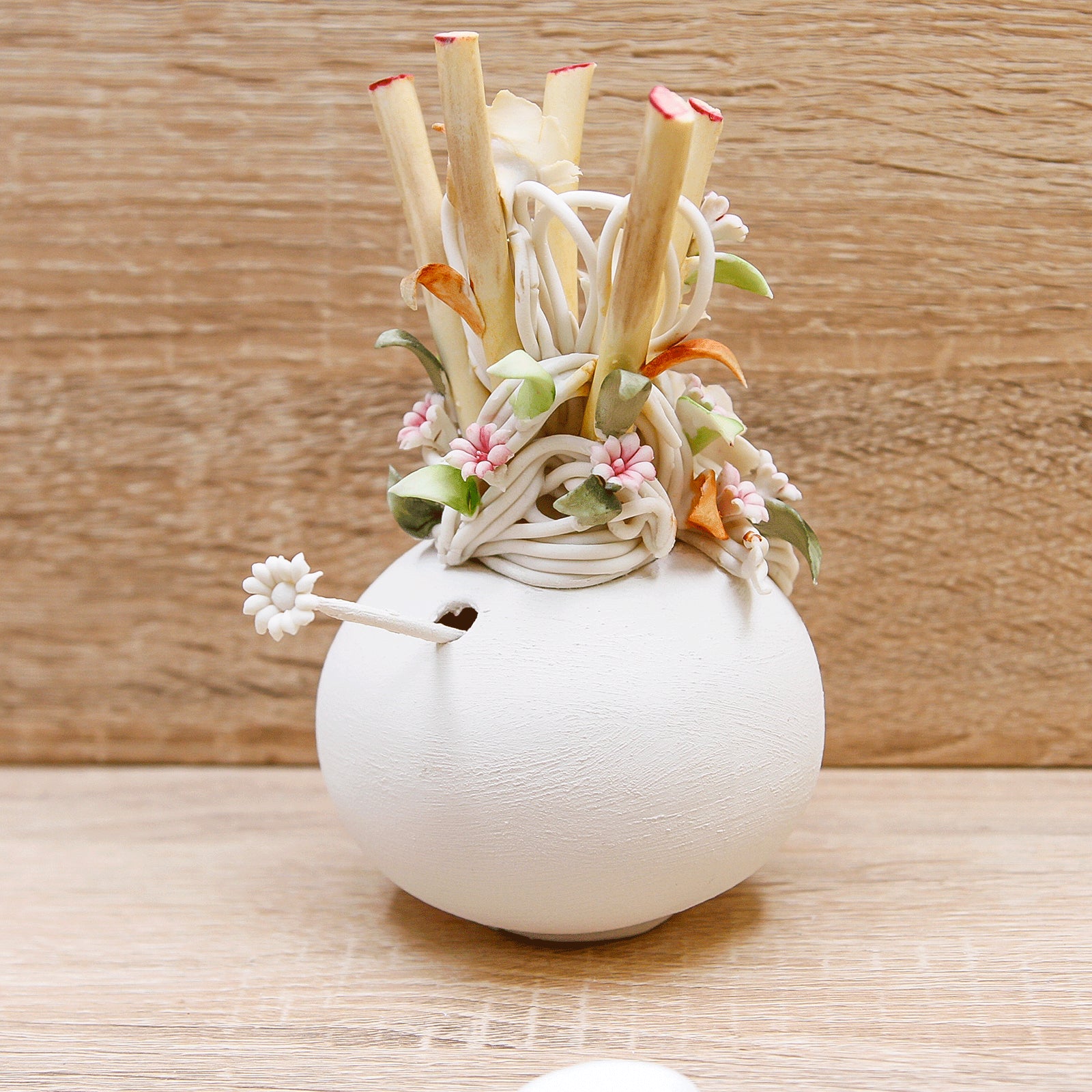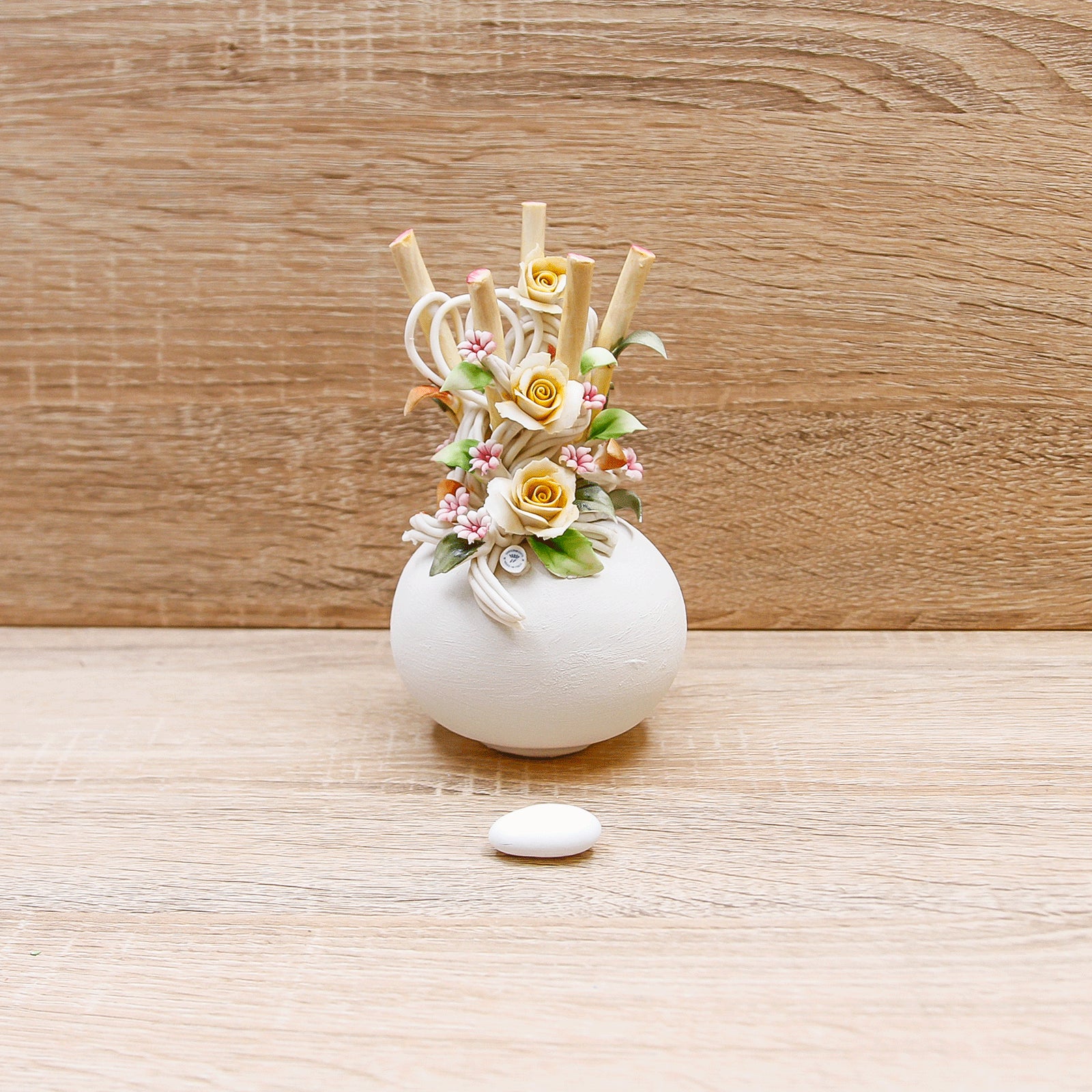 Profumatore Sfera con decori di rose, fiorellini e foglie, firmato Bella Napoli Porcellana di Capodimonte. - Linea Rose -