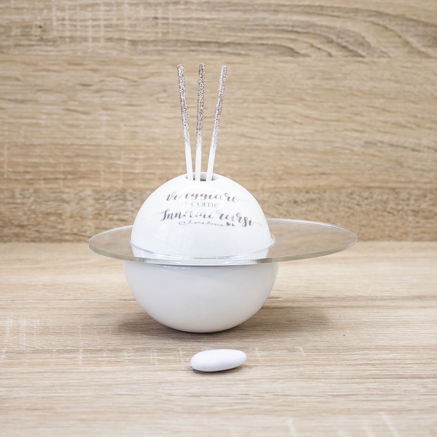 Il prezzo con la confezione comprende: Profumazione, Bastoncini Glitter, Astuccio, Doppio Nastro, Gessetto o Fiore a Scelta, Portaconfetti e 5 Confetti.