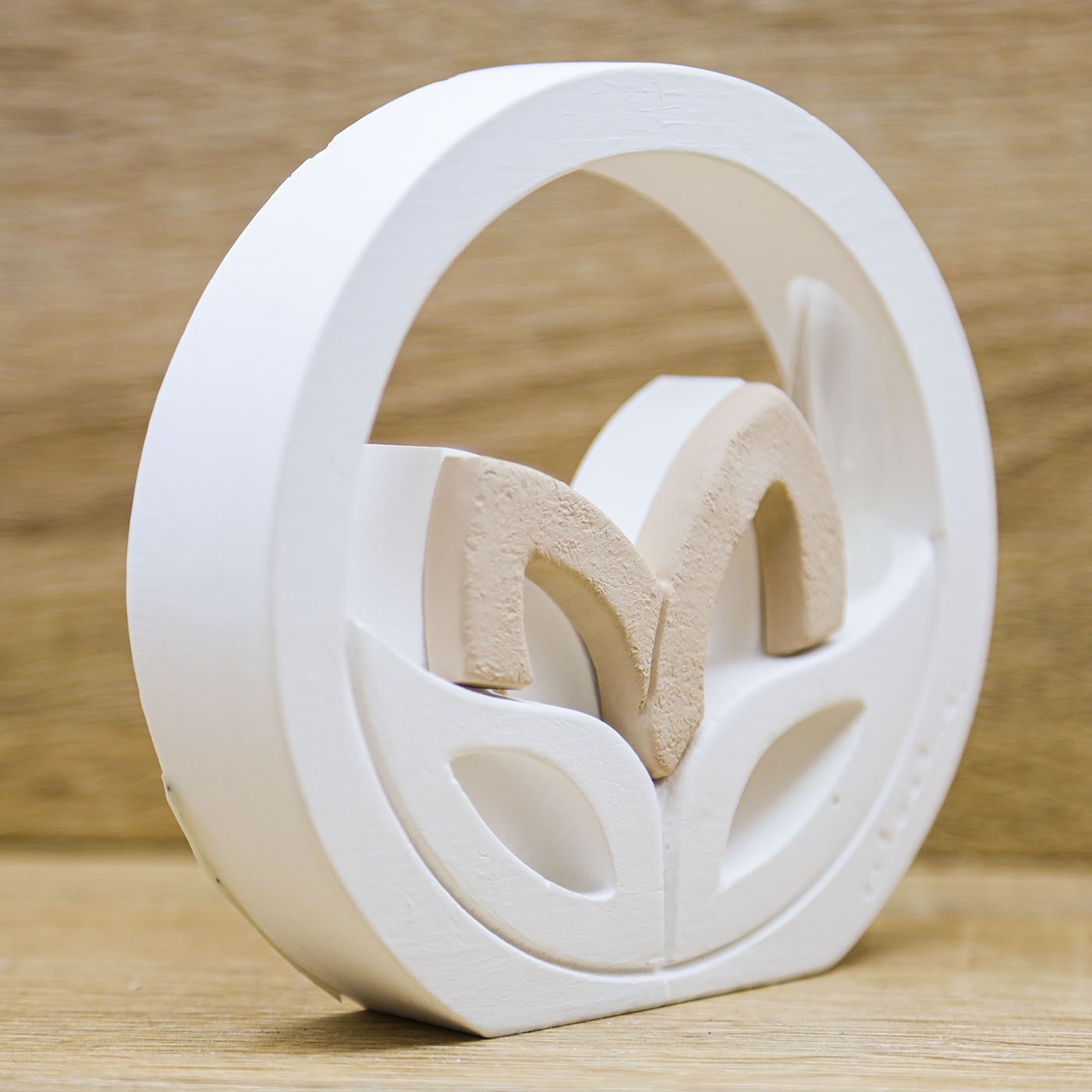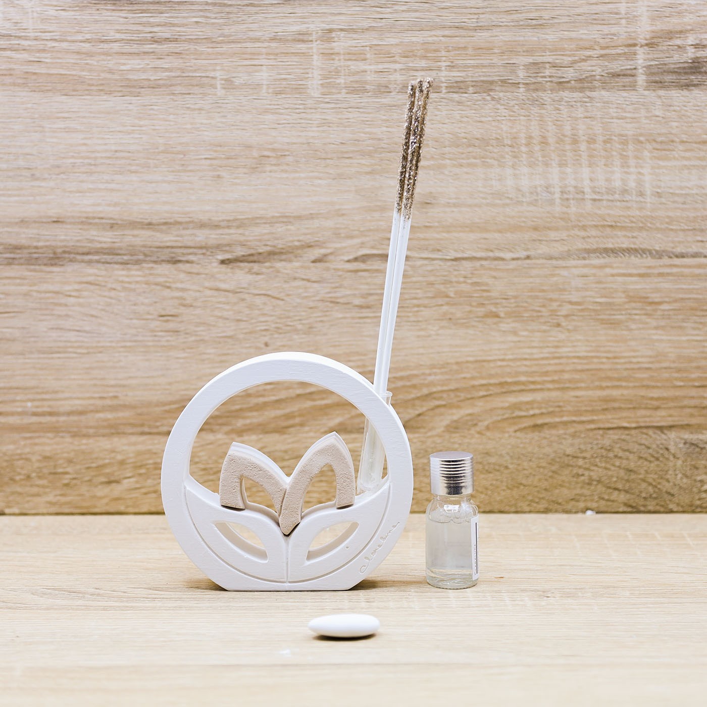 Profumatore tondo con fiore bianco e tortora, firmato Claraluna.