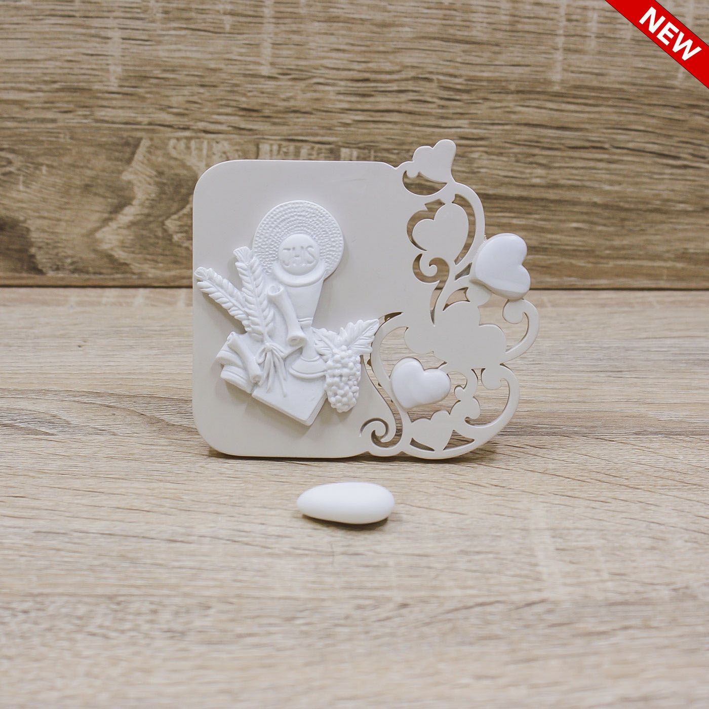 Il prezzo con la confezione comprende: Astuccio, Doppio Nastro, Gessetto o Fiore a Scelta, Portaconfetti e 5 Confetti.