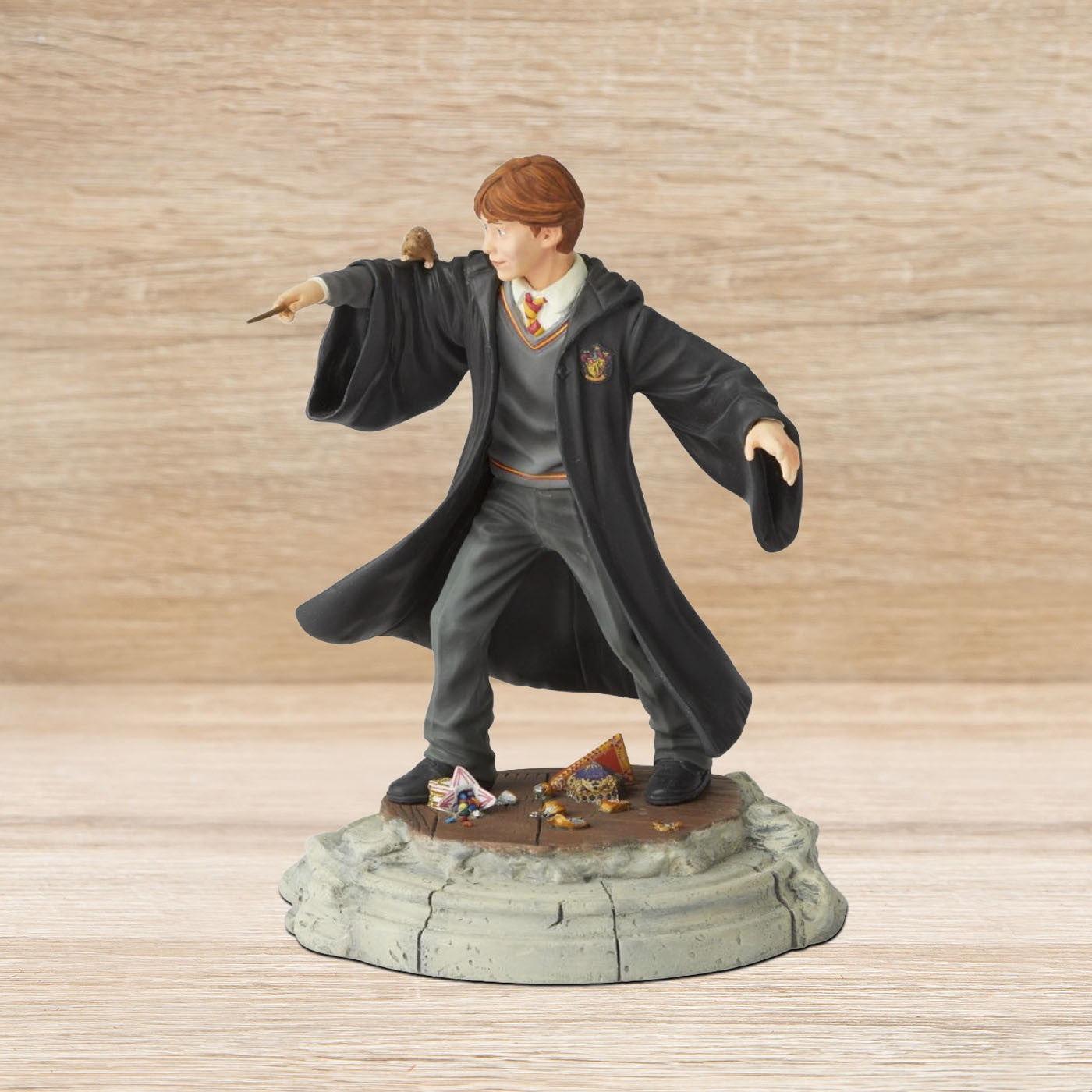 Nessun dettaglio è stato tralasciato, dall'uniforme di Ron di Hogwarts agli involucri di caramelle ai suoi piedi.