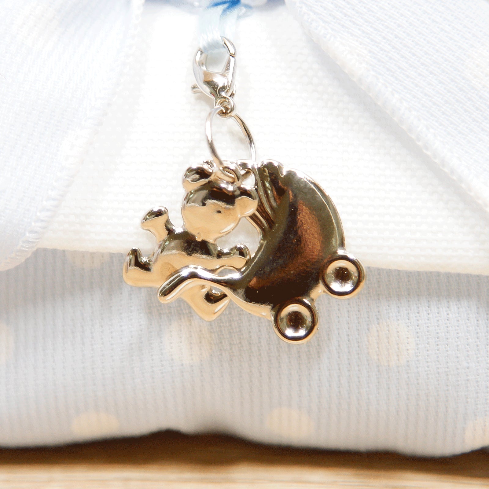 Sacchetto Bustina Celeste a Pois con Ciondolo Culla e Orsetto