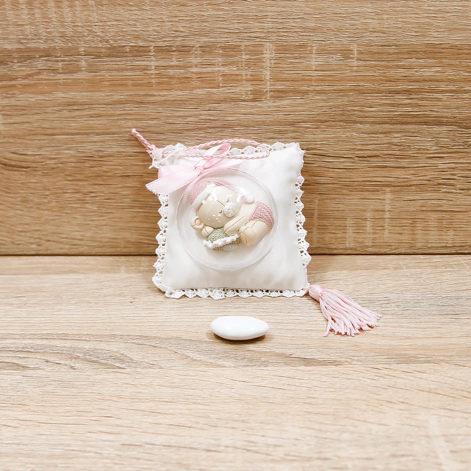 Cuscino in raso con Orsetto in due Modelli Assortiti.